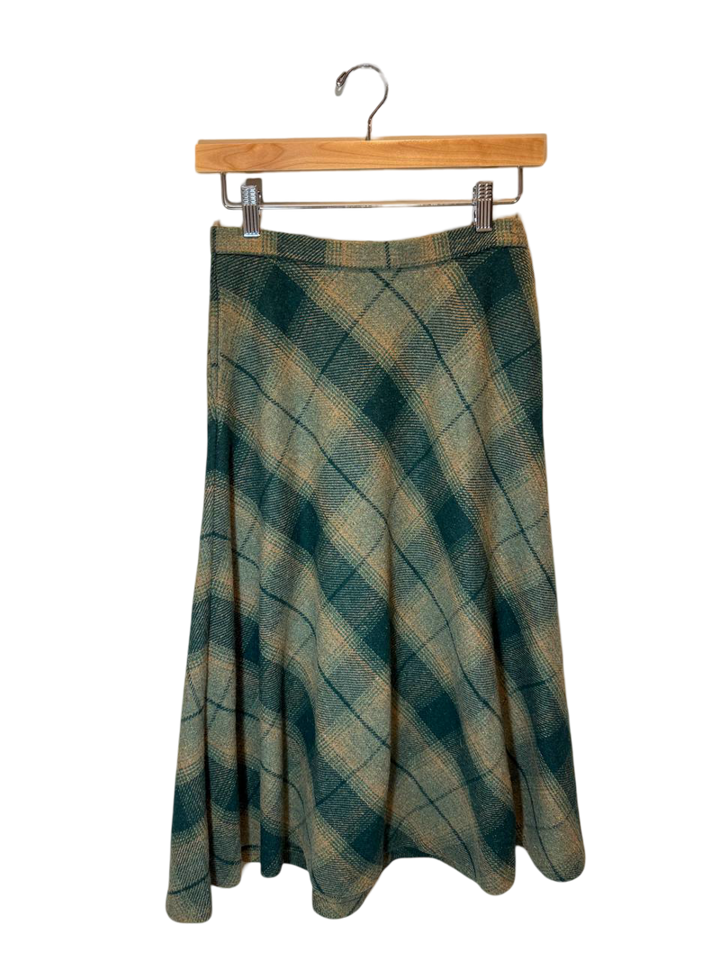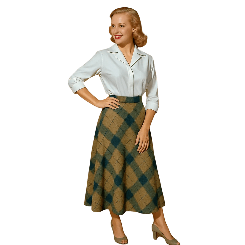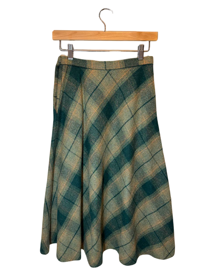 1960s Highland Tweed Skirt – a classic wool tweed skirt with a timeless plaid pattern, blending elegance with everyday practicality.