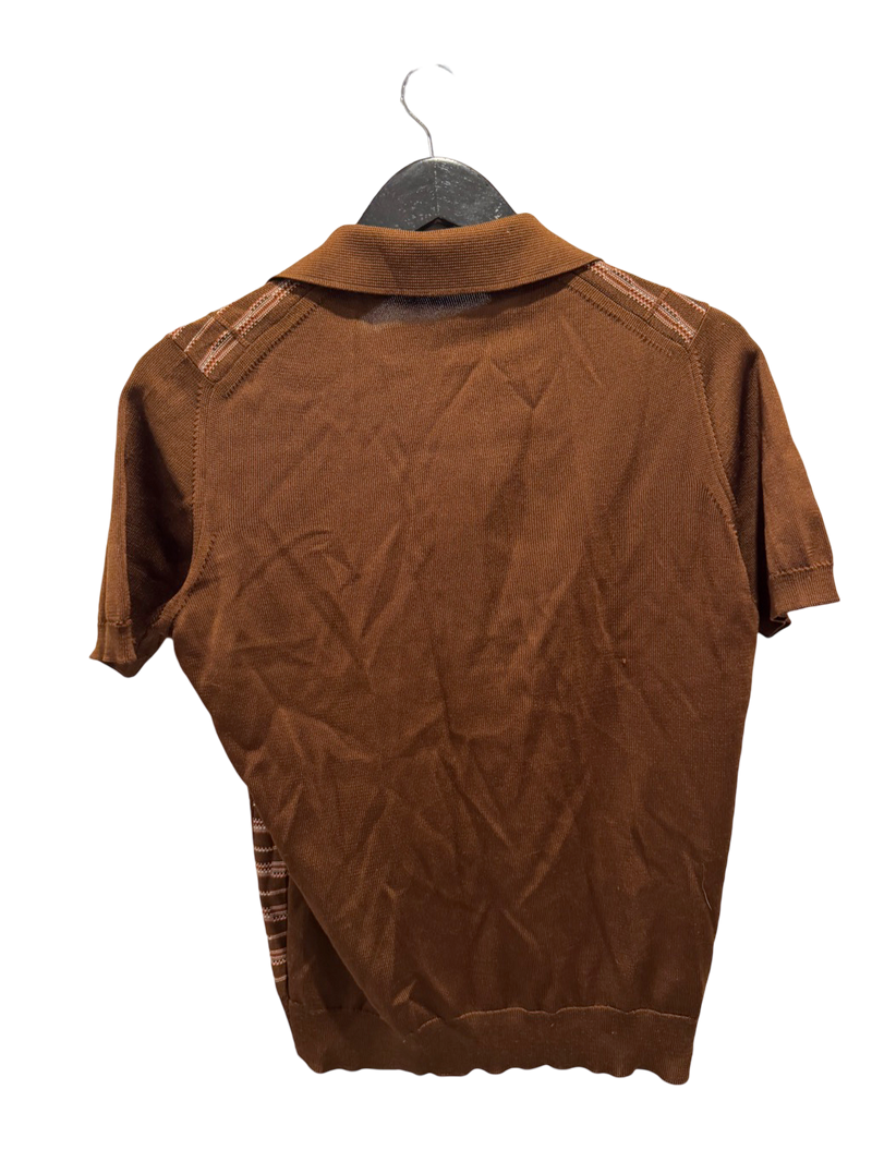 1960s Amalfi Knit Polo – a finely crafted knit polo in rich espresso tones, embodying the effortless charm of Italian summers and mid-century café culture.
