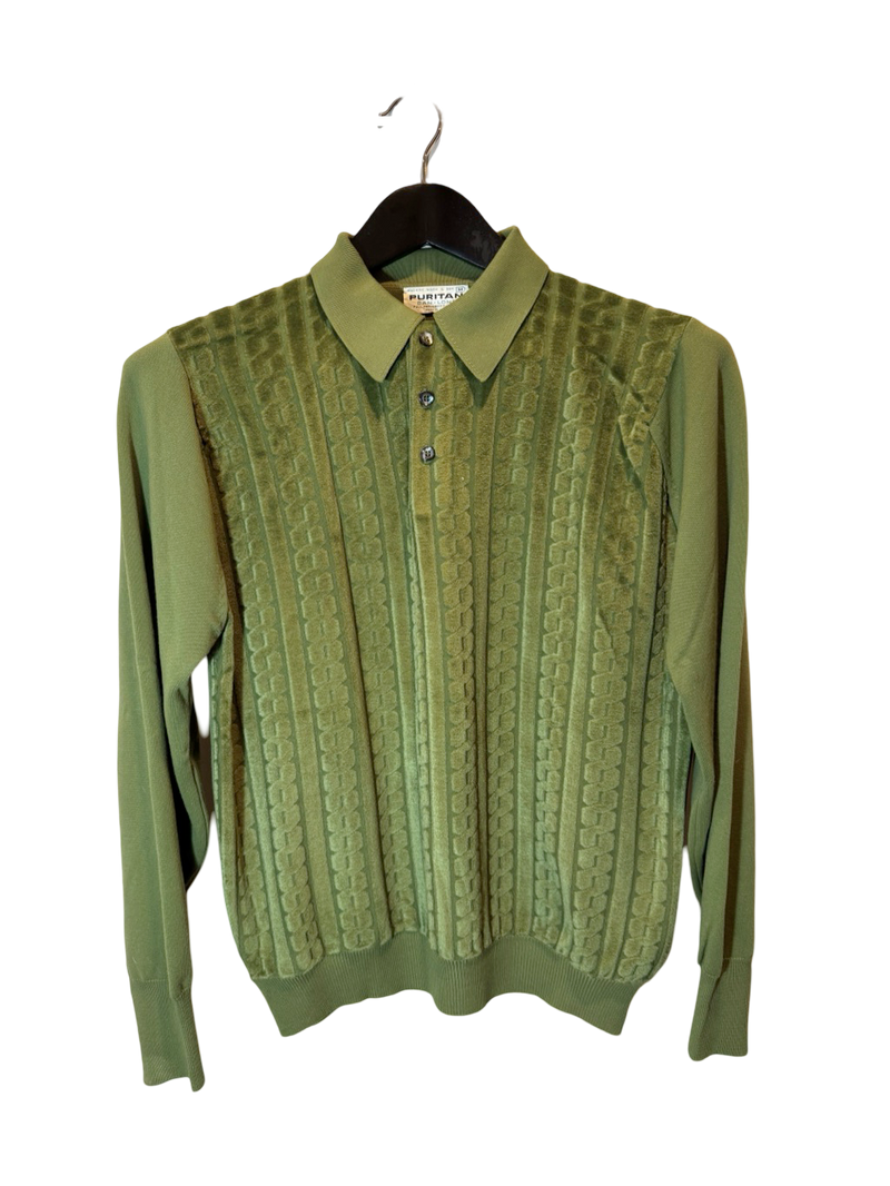 1960s Puritan Knit Polo – a textured, long-sleeve knit polo that defined refined leisure, worn at exclusive resorts and country clubs along the Mediterranean.