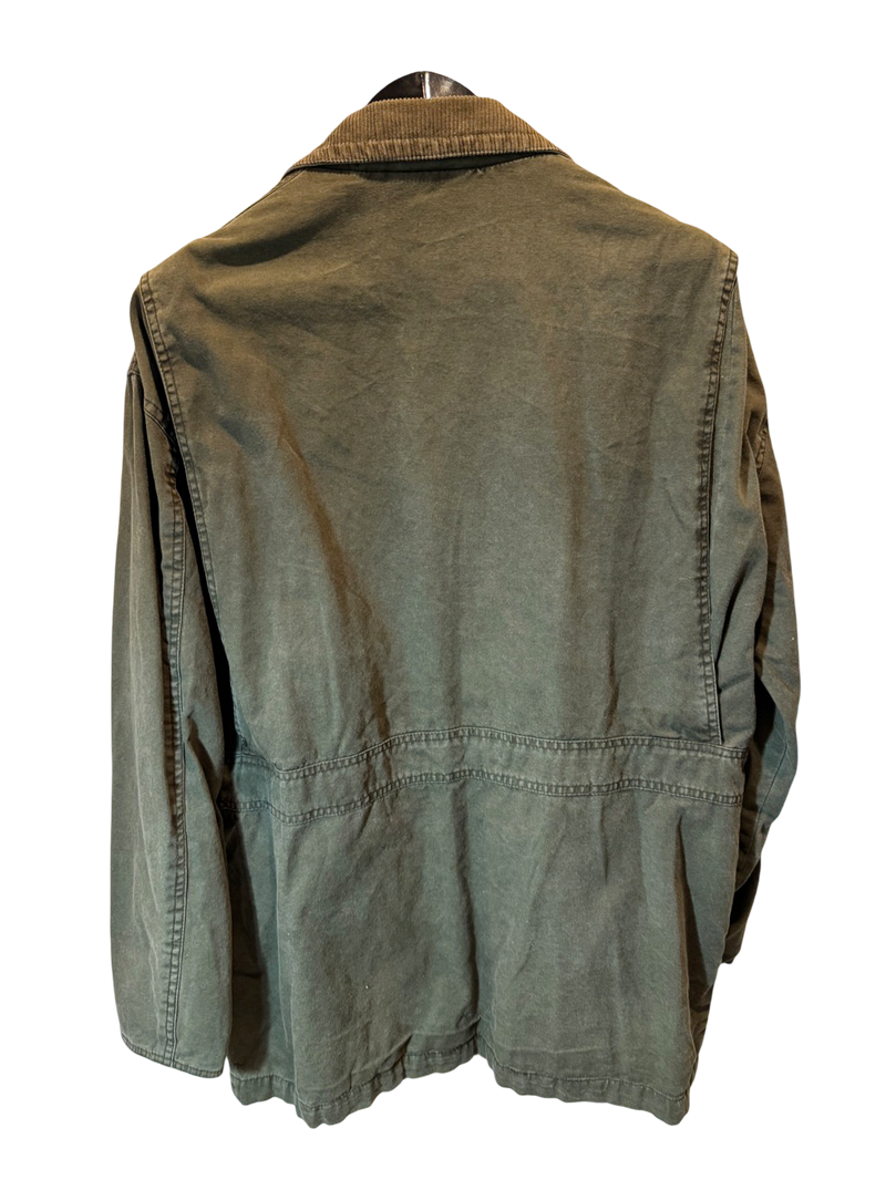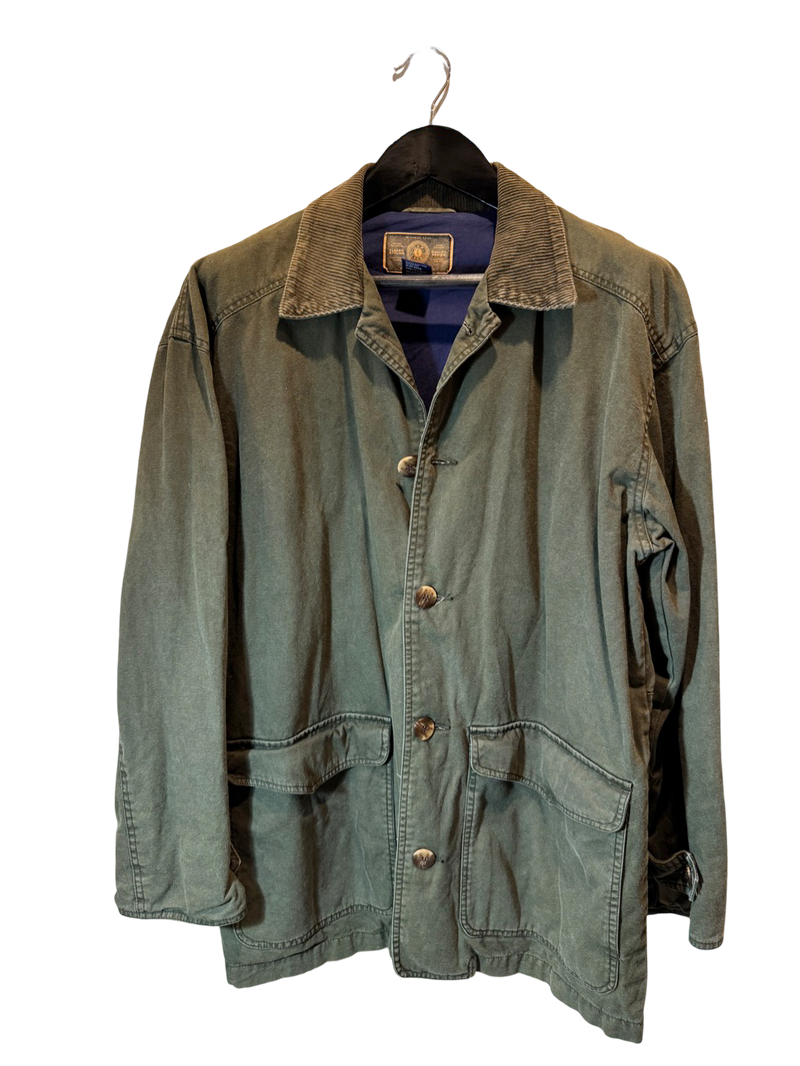 Likely a durable cotton canvas with a corduroy collar. Sourced and revived in the USA.