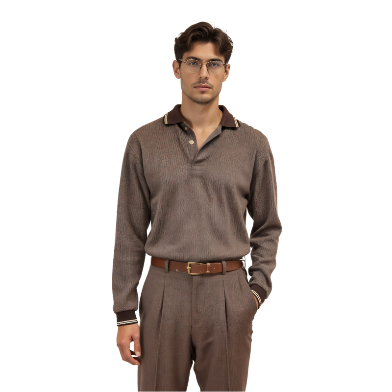 1960s Monaco Polo Sweater – a lightweight, long-sleeve knit with a refined geometric pattern, evoking the understated elegance of Riviera leisure and old-money sophistication.