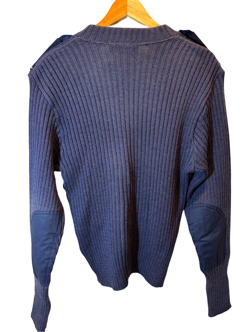 Starsky Patrol Sweater – a ribbed navy military-style pullover from the 1970s, channeling TV cop dramas and undercover style with brass authority.