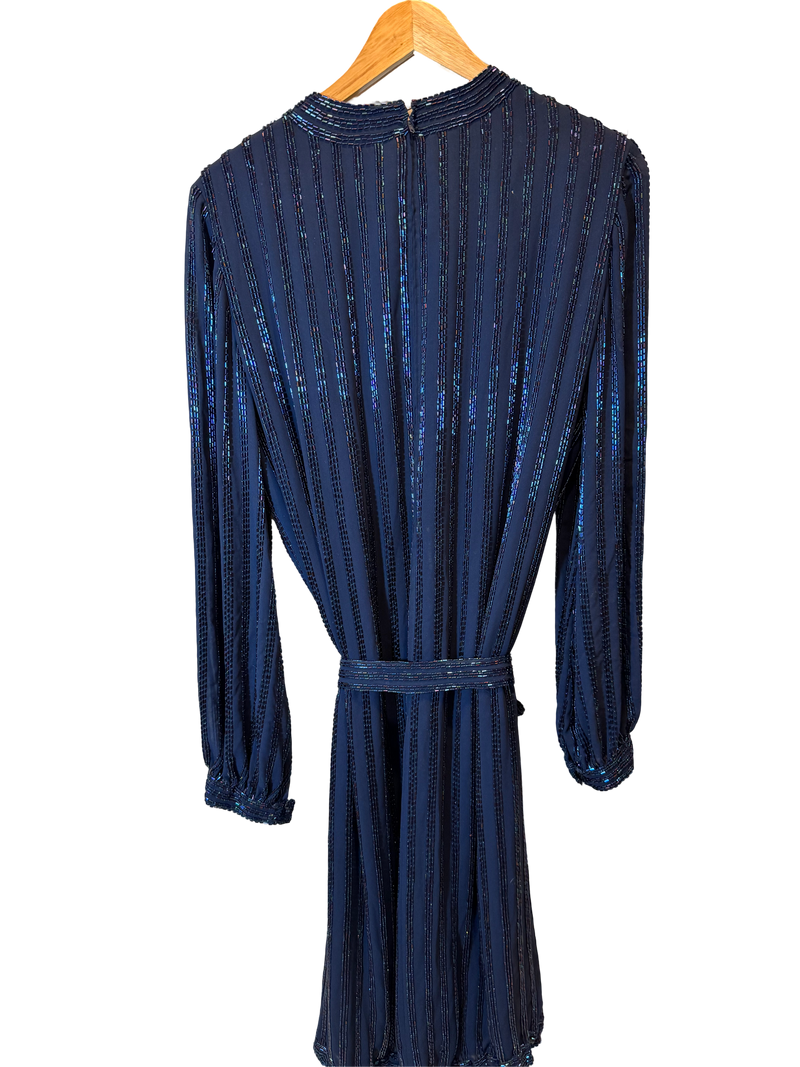 1960s Harlem Jazz Beaded Dress – a shimmering, hand-embellished dress that captures the energy of 1960s jazz lounges. With sleek beading and a flowing silhouette, this piece was made for nights filled with rhythm and elegance.