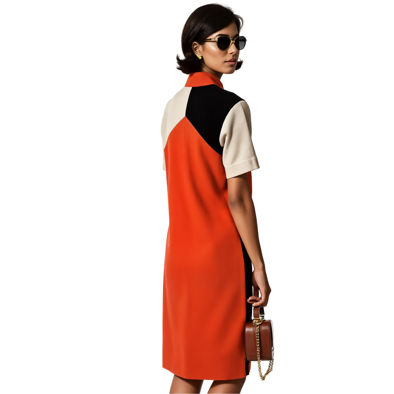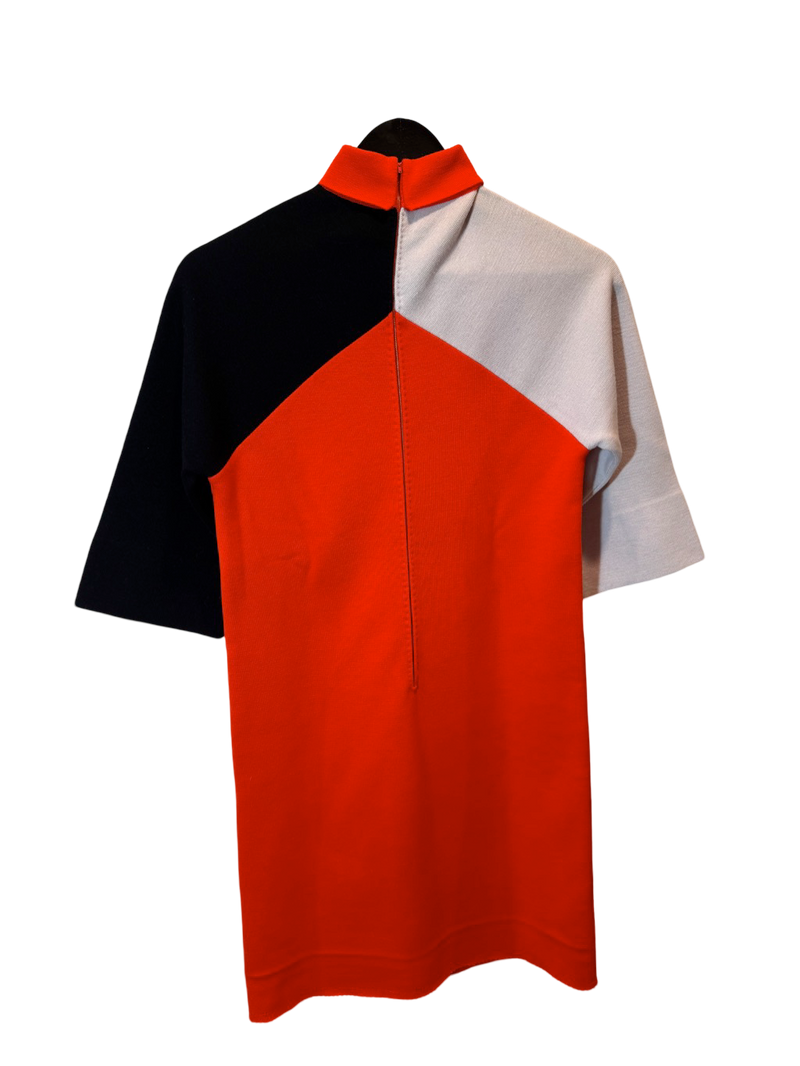 Airtrain Lounge Dress – a striking 1970s mod mini with bold tri-color blocking, the kind seen gliding through terminals or stealing glances at airline club bars.