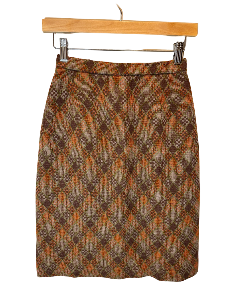 1960s Autumn Argyle Jacket – a warm-toned argyle wool jacket, blending classic tailoring with the cozy hues of 1960s fall fashion.