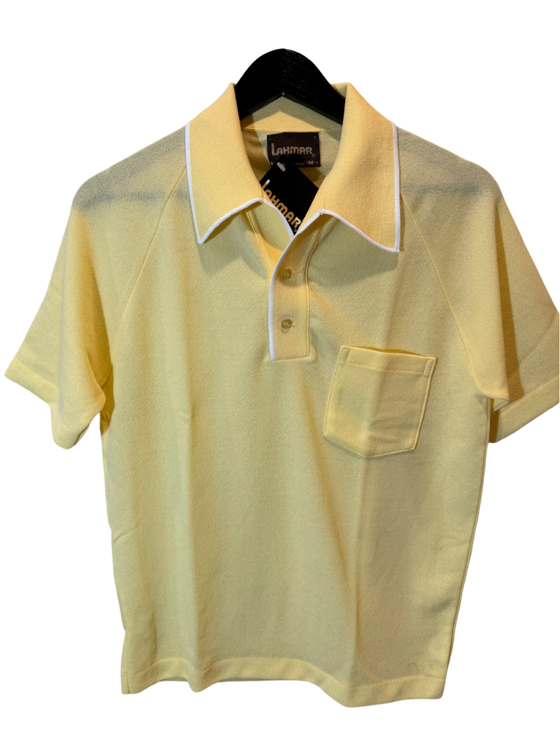Miami Vice Polo – a pastel yellow short-sleeve polo from the 1980s with white trim, straight out of the era of fast cars, neon nights, and undercover edge.