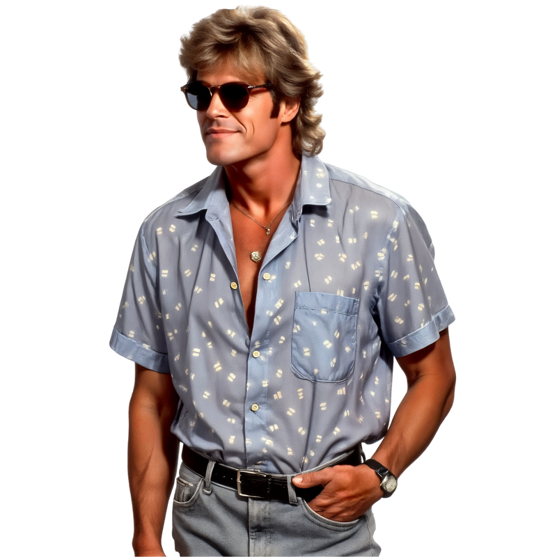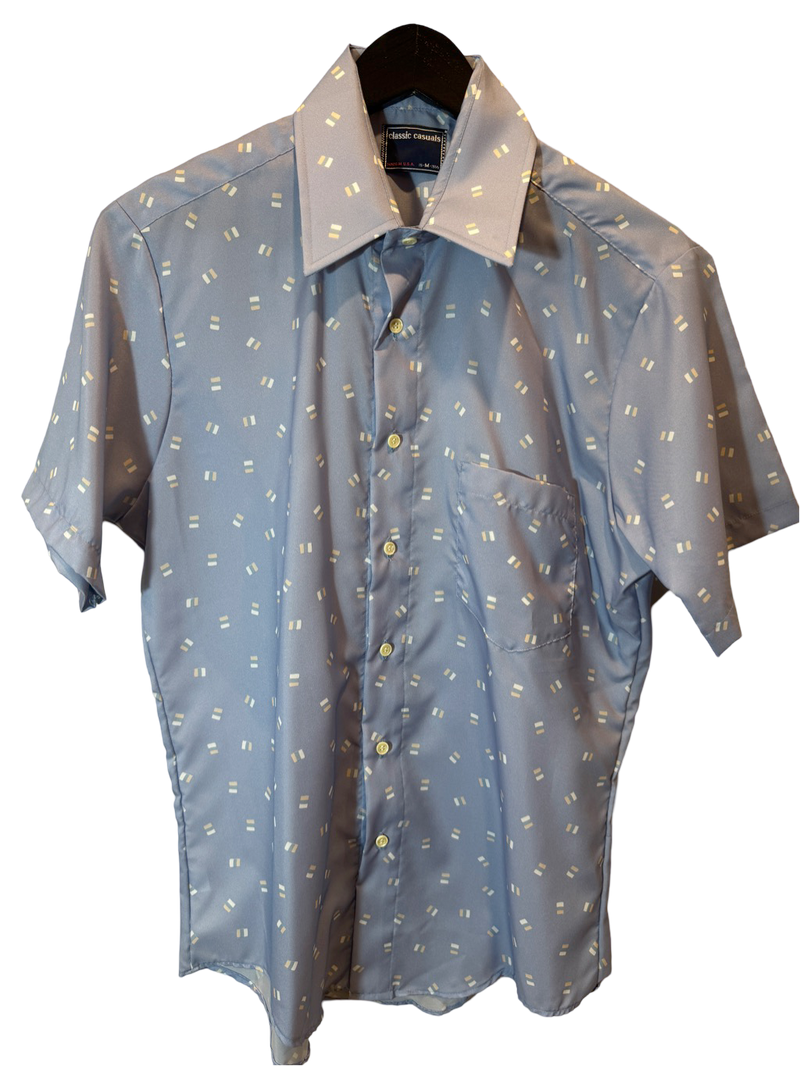 Blip Fade Shirt – this silky short-sleeve button-up from the 1970s pops with pixelated optimism, echoing the golden age of variety shows and primetime charm.