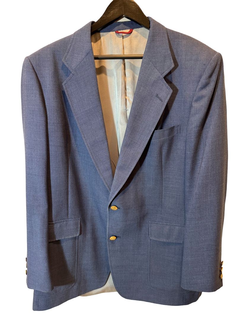 Malibu Vice Blazer – this powder blue 1970s jacket with gold buttons echoes the coastal cool of west coast nightlife and early luxury television aesthetics.