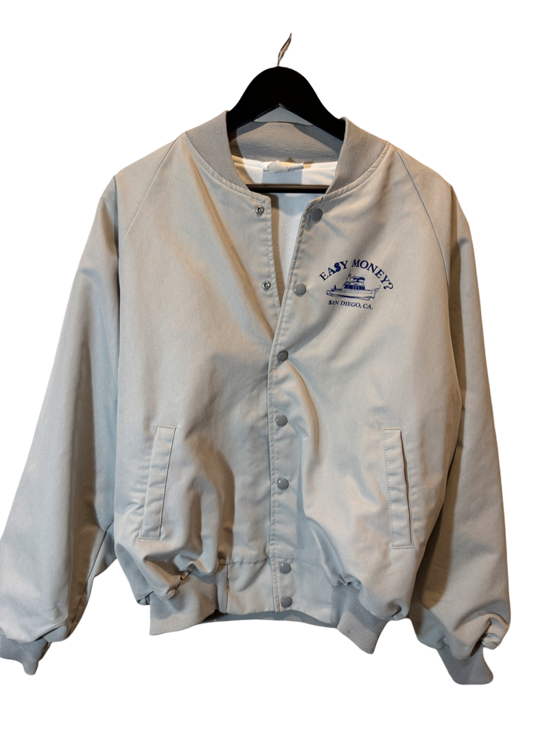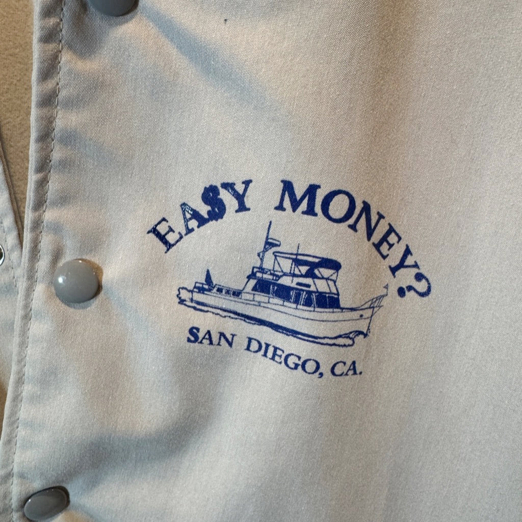 Easy Money Club Jacket – this 1970s satin bomber with San Diego yacht print channels West Coast leisure culture and the glamorized hustle of sun-soaked marinas.