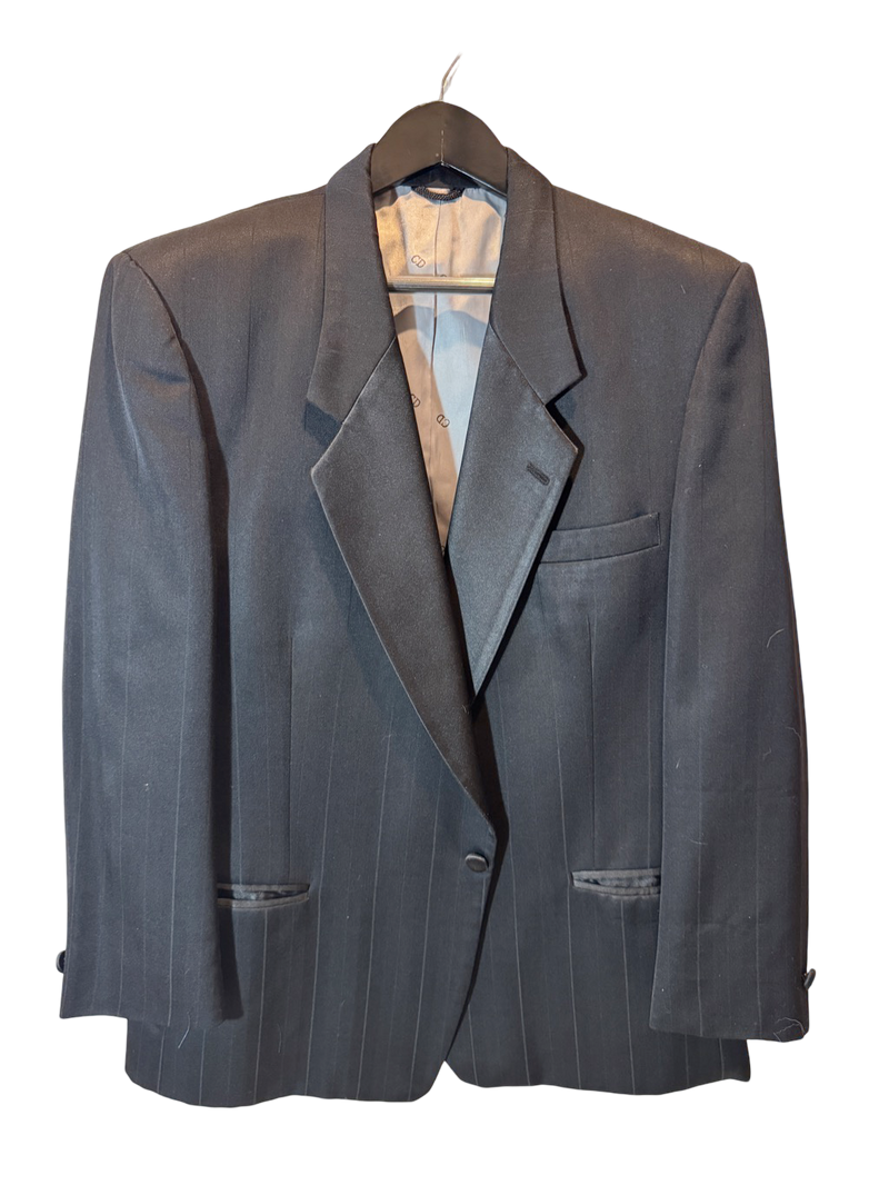 Likely wool blend with satin-faced lapels and synthetic lining. Sourced and revived in the USA.