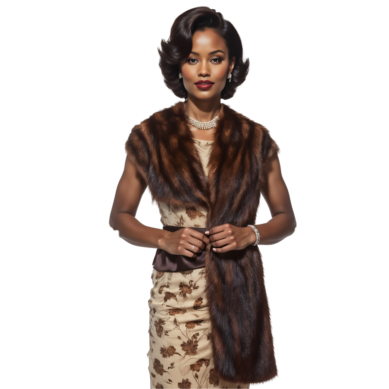 Velvet Underground Stole – this 1960s dark mink-style fur wrap evokes the era’s noir elegance and underground jazz glamour in every lush strand.