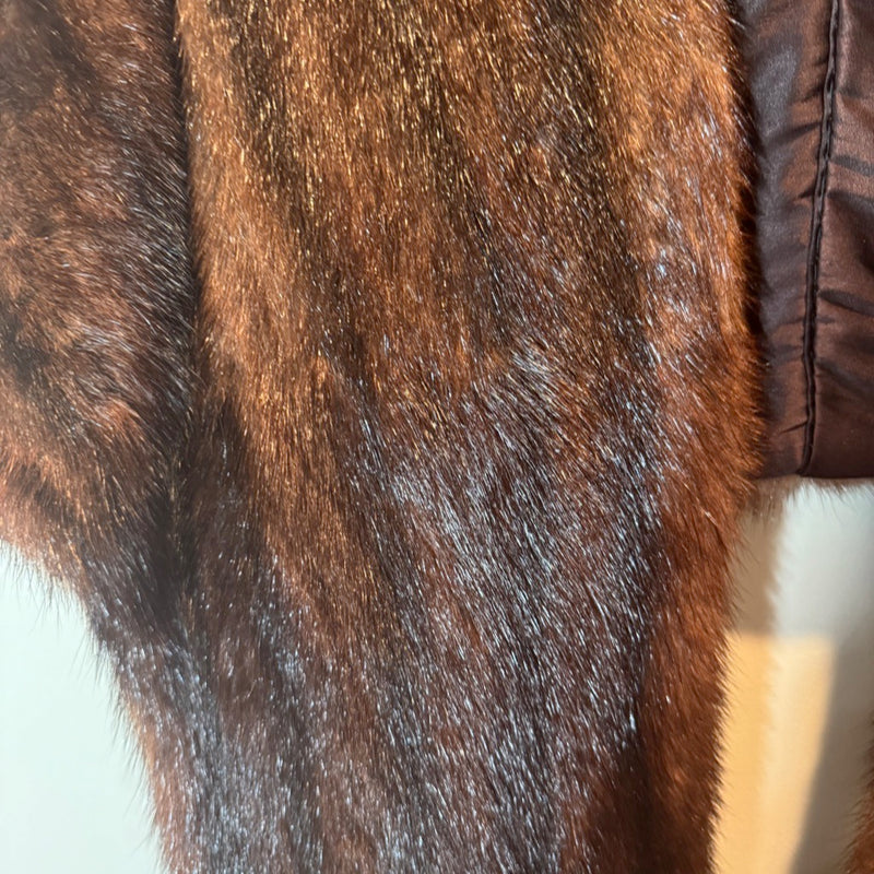Likely faux or real mink fur with satin lining. Sourced and revived in the USA.