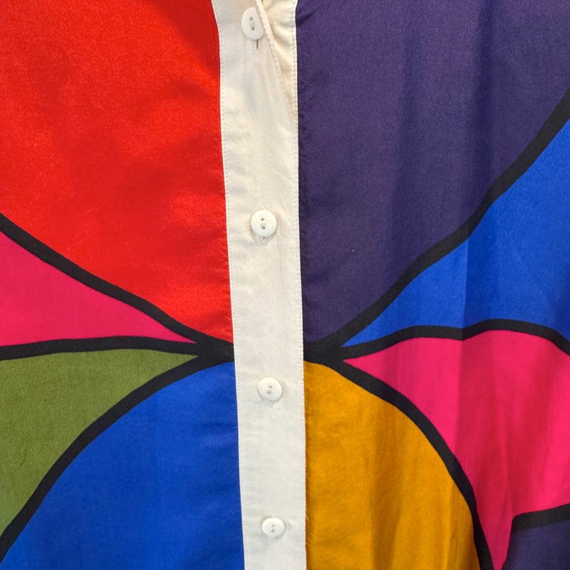 Likely rayon-poly blend with printed panel front. Sourced and revived in the USA.