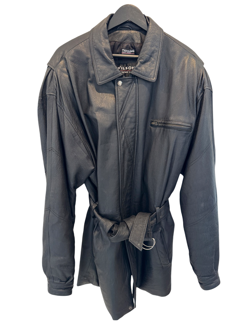 Singles Soundtrack Jacket – a belted black leather piece from the 1990s, channeling Seattle alleyway cool and the brooding angst of alt-rock album covers.