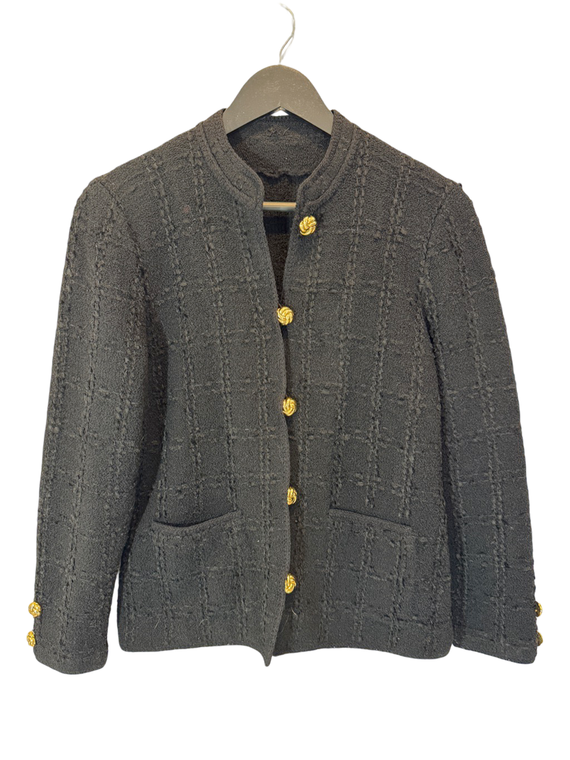 Likely wool blend boucle with gold metal buttons. Sourced and revived in the USA.