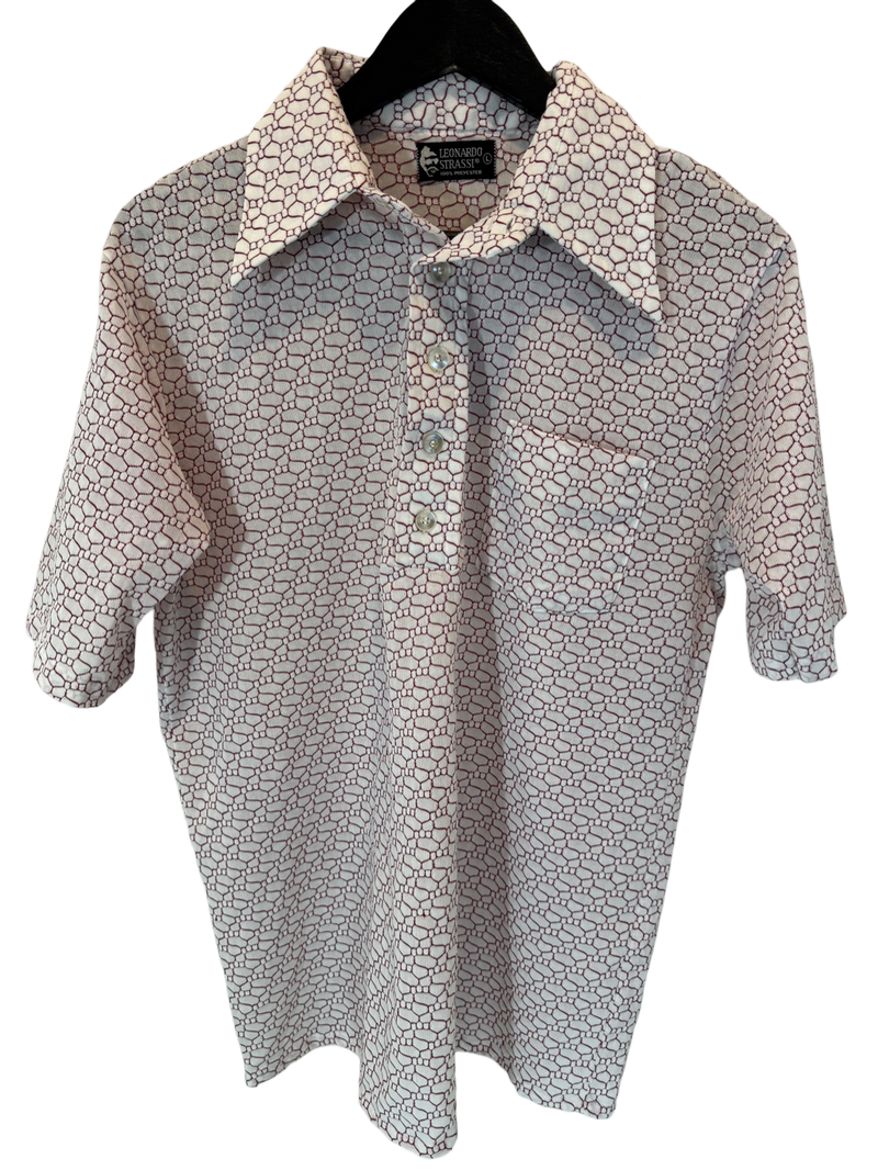 Leonardo Strassi Polo – a sharp 1960s knit polo with geometric print, echoing the elegance of Roman summers and café culture on Via Veneto.