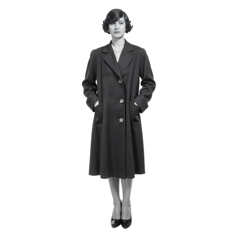 Once owned by a Hello Girl activist (check her closet), this coat accompanied her through shift changes, ration lines, and borrowed moments of stillness.