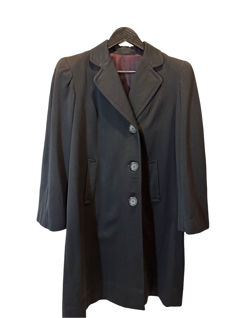 Likely wool crepe with satin lining and metal-accented buttons. Sourced and revived in the USA.