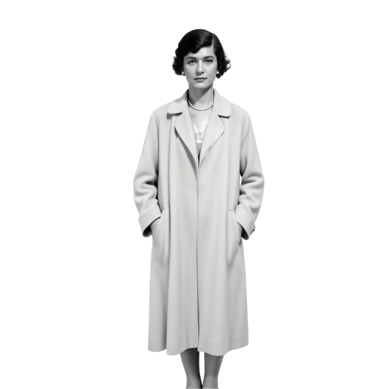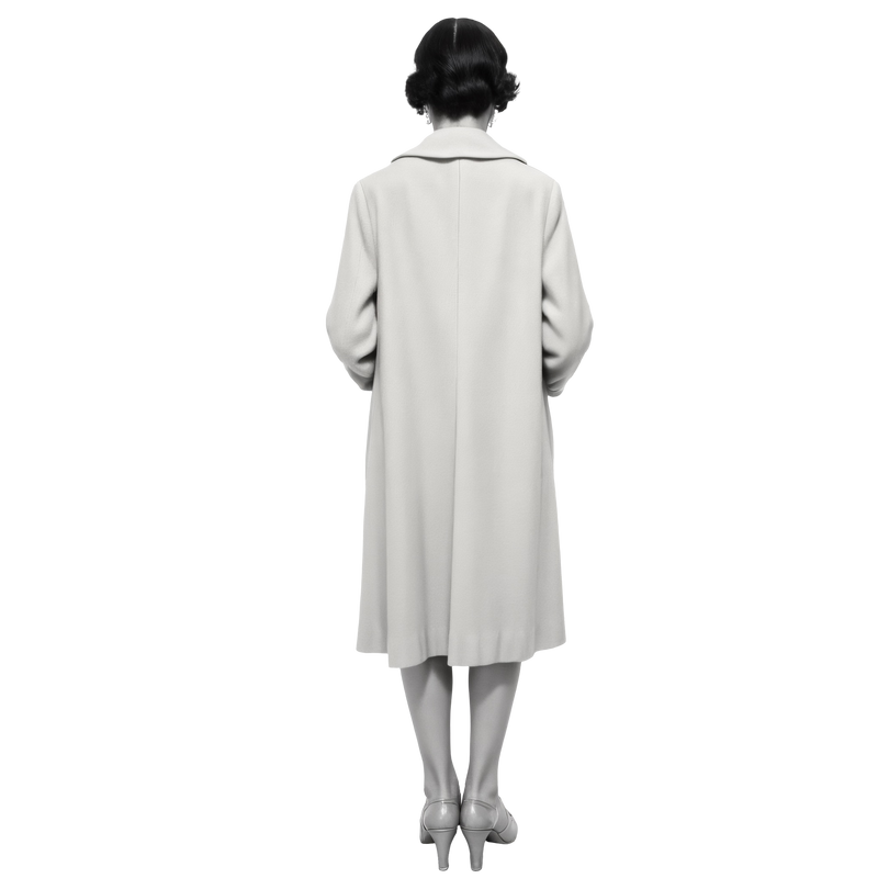 Hello Girl Telegram Coat – a structured wool swing coat from the pre-war era, echoing the pragmatic elegance of women working communications lines in the 1930s.