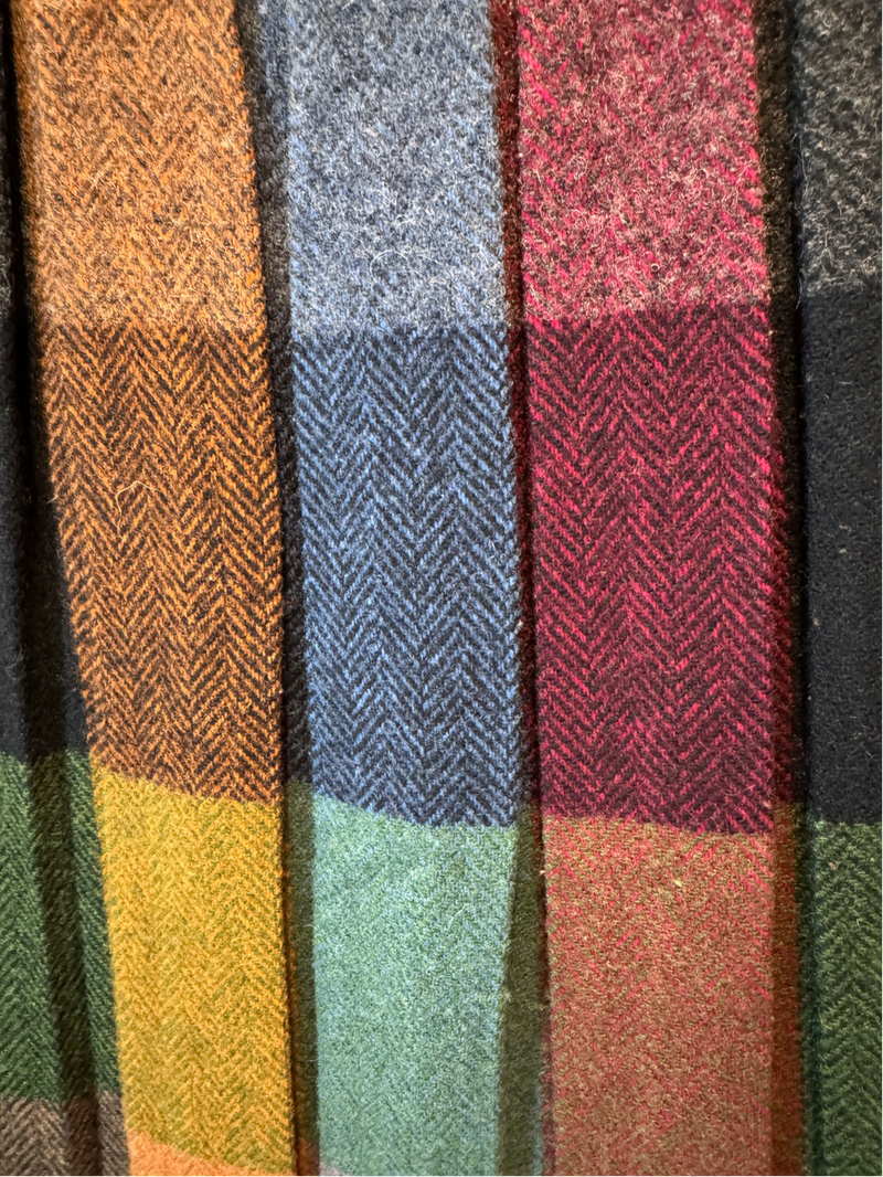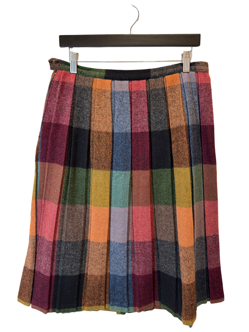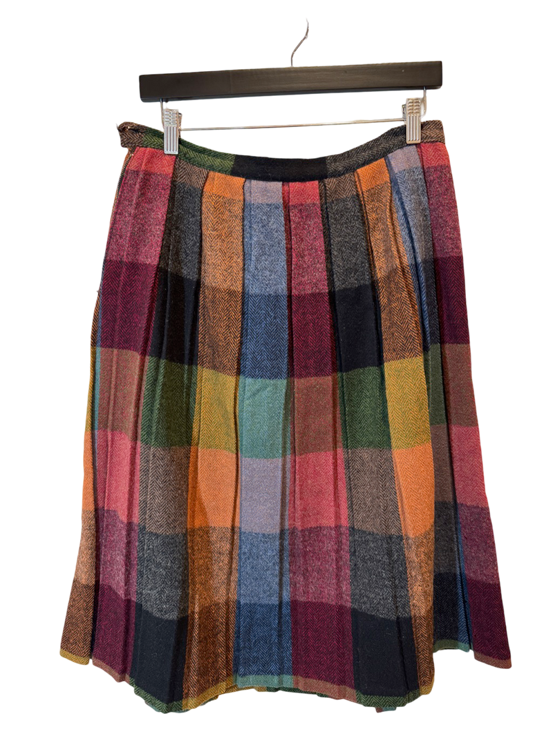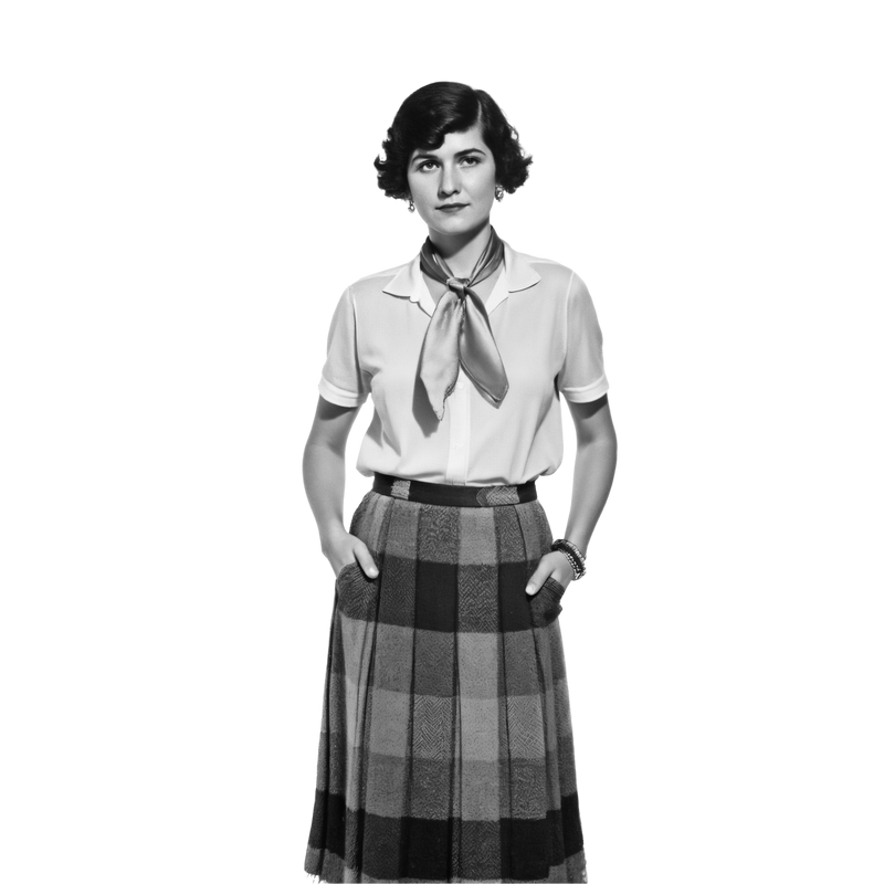 Liberty Parade Skirt – a boldly pleated wool skirt in vibrant plaid, worn during pre-war marches and pageants that celebrated community strength and national pride.