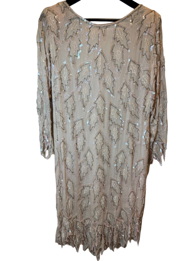 Likely a silk blend with hand-sewn sequins and beading. Sourced and revived in the USA.