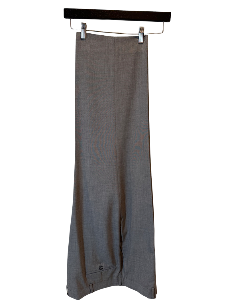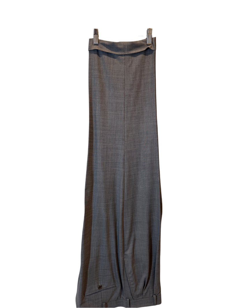 Network Syndicate Slacks – gray wool trousers from the 1970s with adjustable button cuffs, tailored for long editing bays and soundstage dashes.