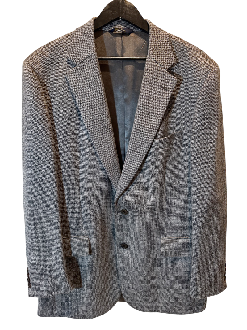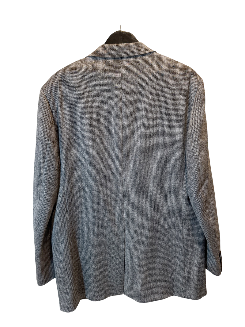 Likely wool blend suiting fabric with synthetic lining. Sourced and revived in the USA.