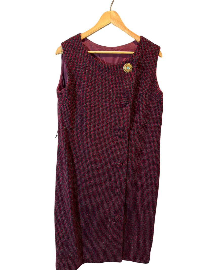 Union Hall Tweed Dress – a pre-war sleeveless wool dress in bold tweed, echoing the refined resilience of early 20th-century suffragettes and social reform leaders.