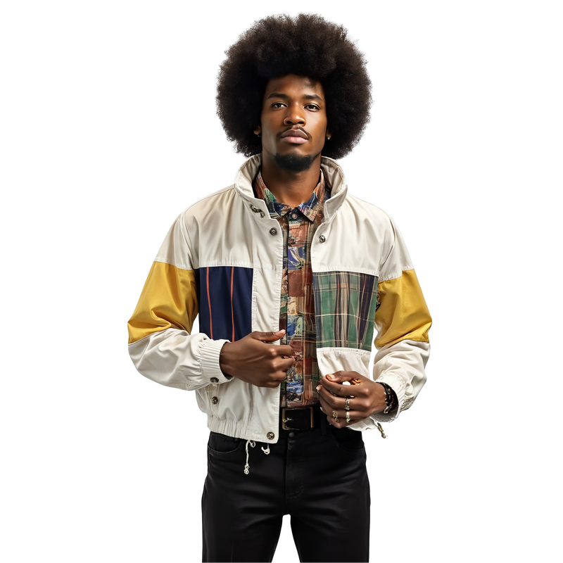 Mixshow Signalbreaker Parka – a bold color-blocked windbreaker with pop-art stripes, plaid, and primary hits made for outdoor sets, roller rallies, and mixshow mornings.