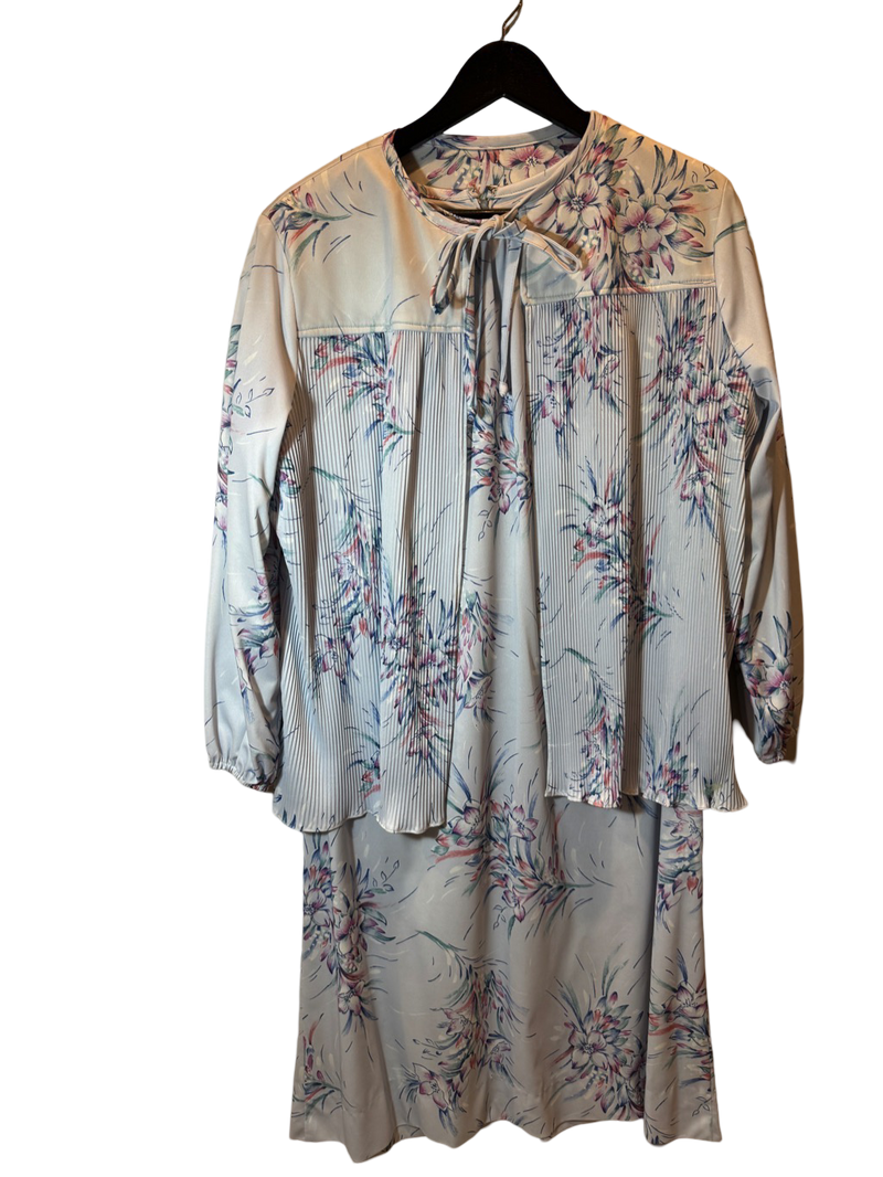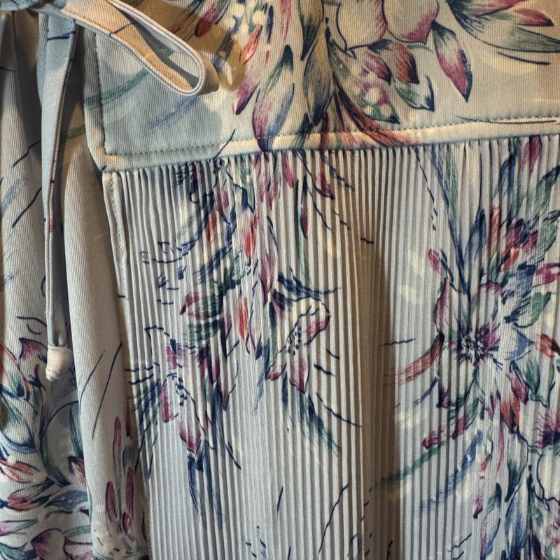 Likely a lightweight polyester blend with soft pleating. Sourced and revived in the USA.