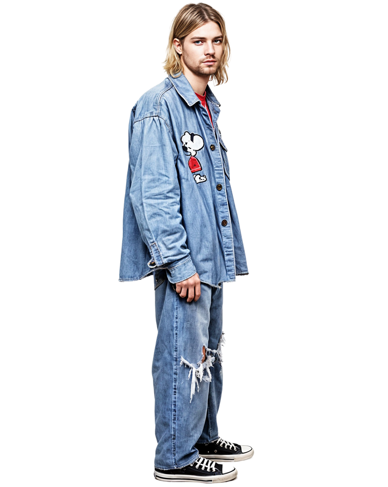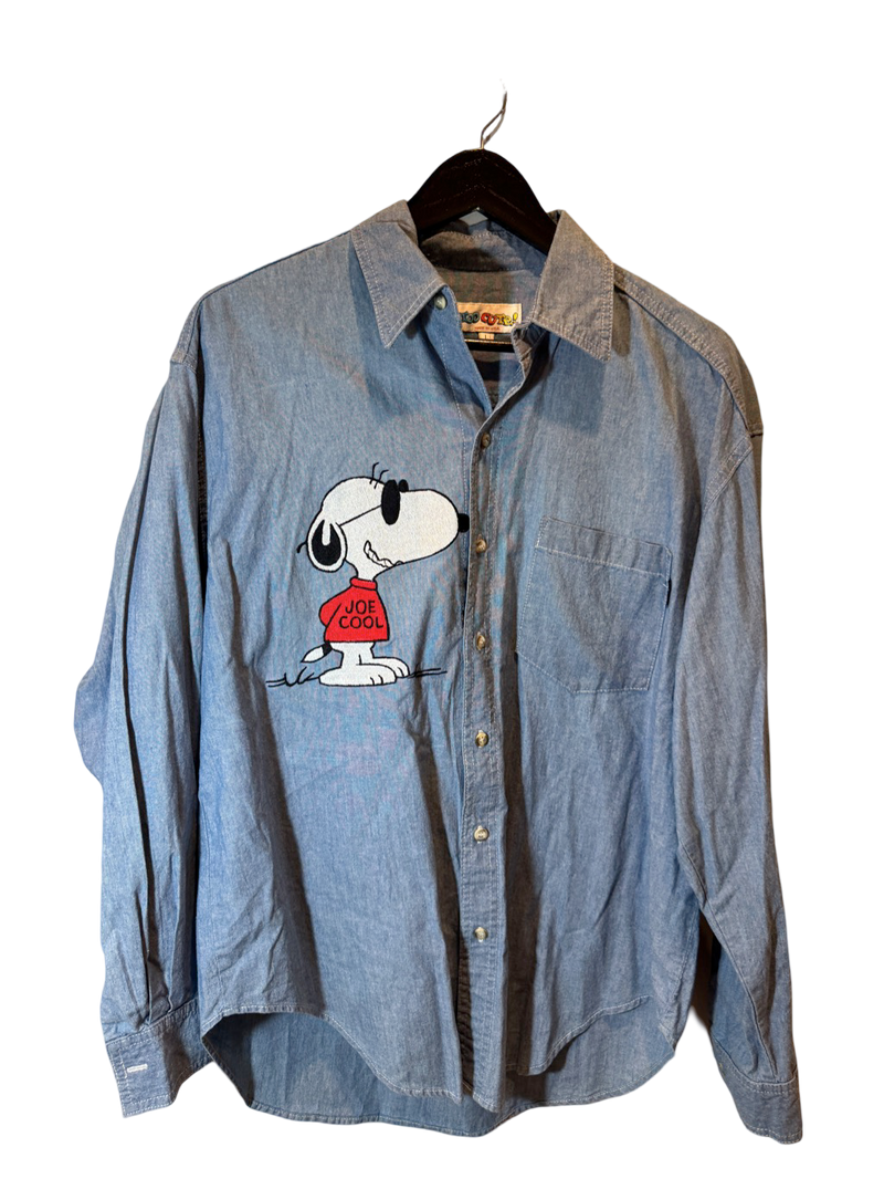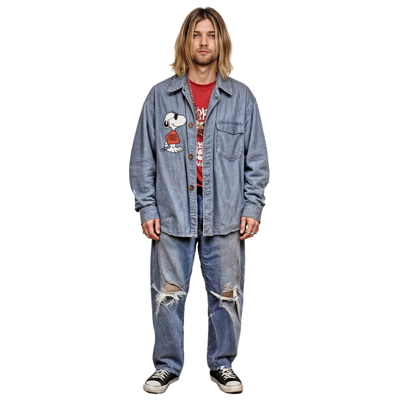 Peanuts Campus Shirt – this 1990s denim button-down featuring Joe Cool Snoopy nods to vintage college graphics embraced by the grunge underground.