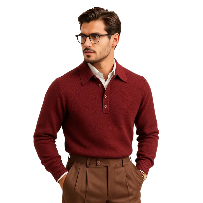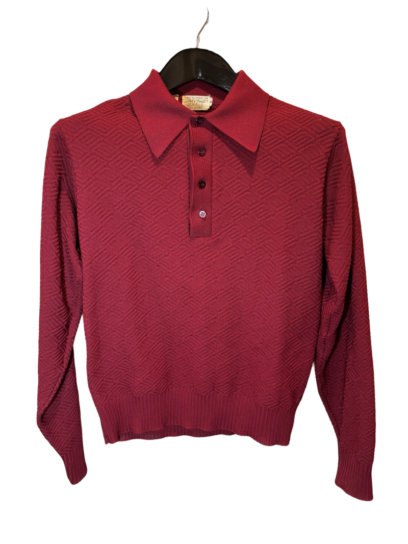 1960s Verona Knit Polo – a textured, long-sleeve knit polo embodying the refined elegance of Italian leisurewear, perfect for evenings at exclusive lounges and countryside retreats.