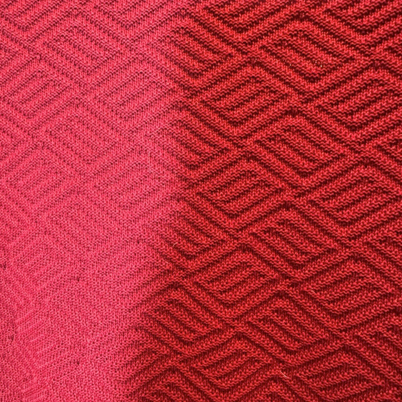 Likely a soft wool or cotton blend with a geometric textured knit. Sourced and revived in the USA.