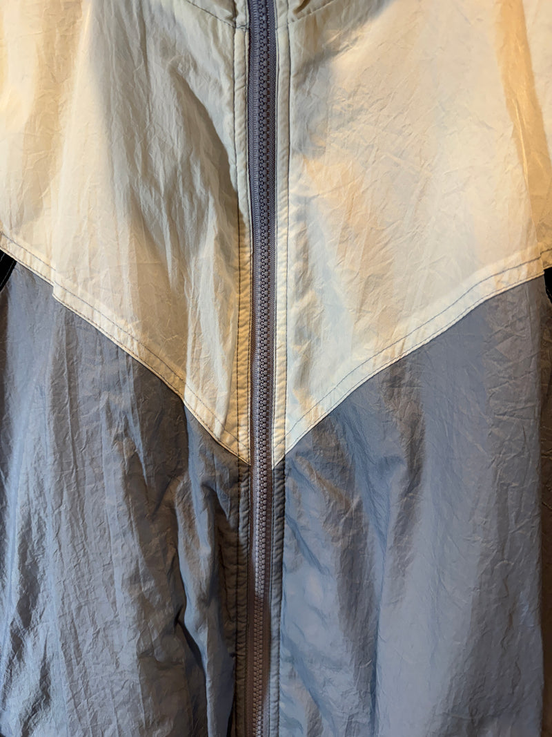 Neon Division Windbreaker – a geometric-panelled nylon shell in storm grey, white, and jet black, tailored for stairwell cyphers and 2 a.m. gas station run-ins.