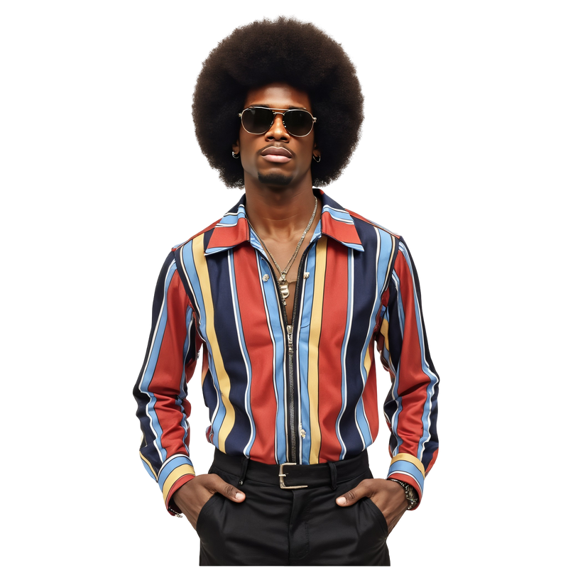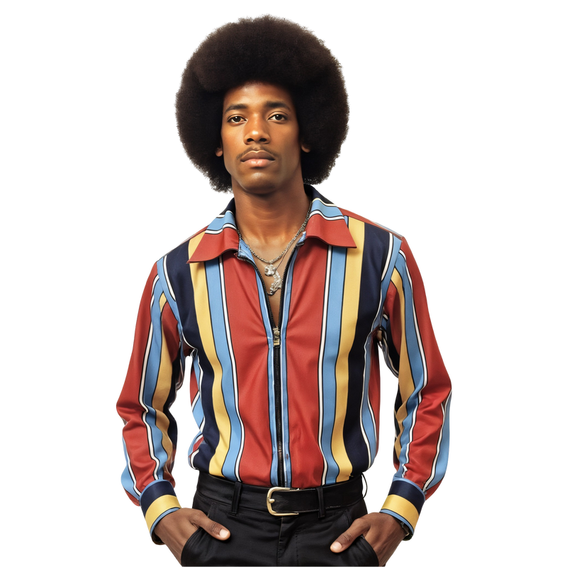 Studio Stripe Vibe Top – a vibrant zip-up disco blouse with colorblocked candy stripes, perfect for dance rehearsals and record store dates.