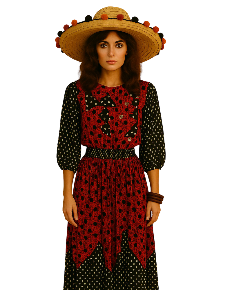 Once worn by bohemian icon Talitha Getty, this dress swept through hillside parties in Andalusia, lantern-lit garden concerts, and quiet mornings spent journaling under fig trees.