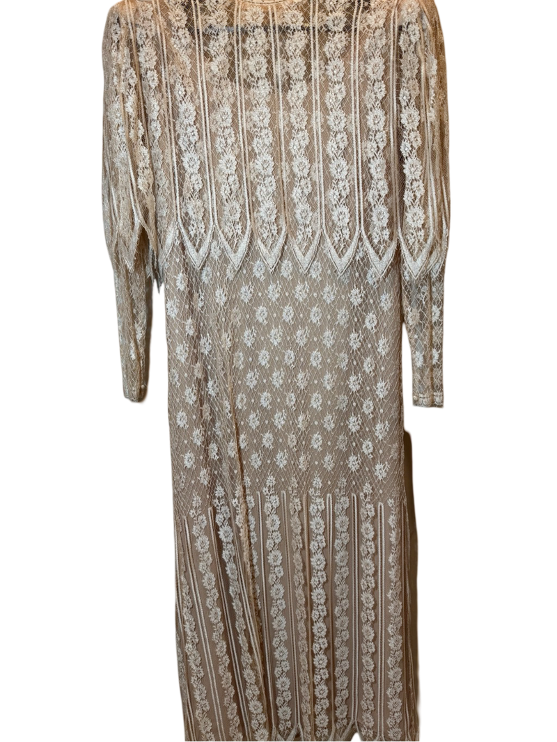 Likely a delicate lace and mesh blend. Sourced and revived in the USA.