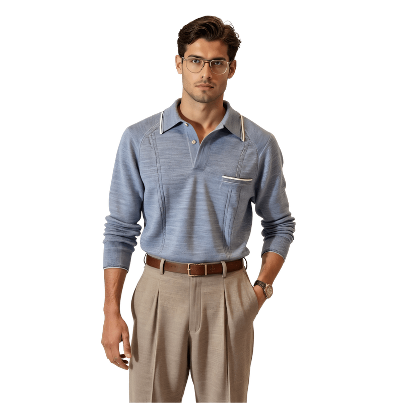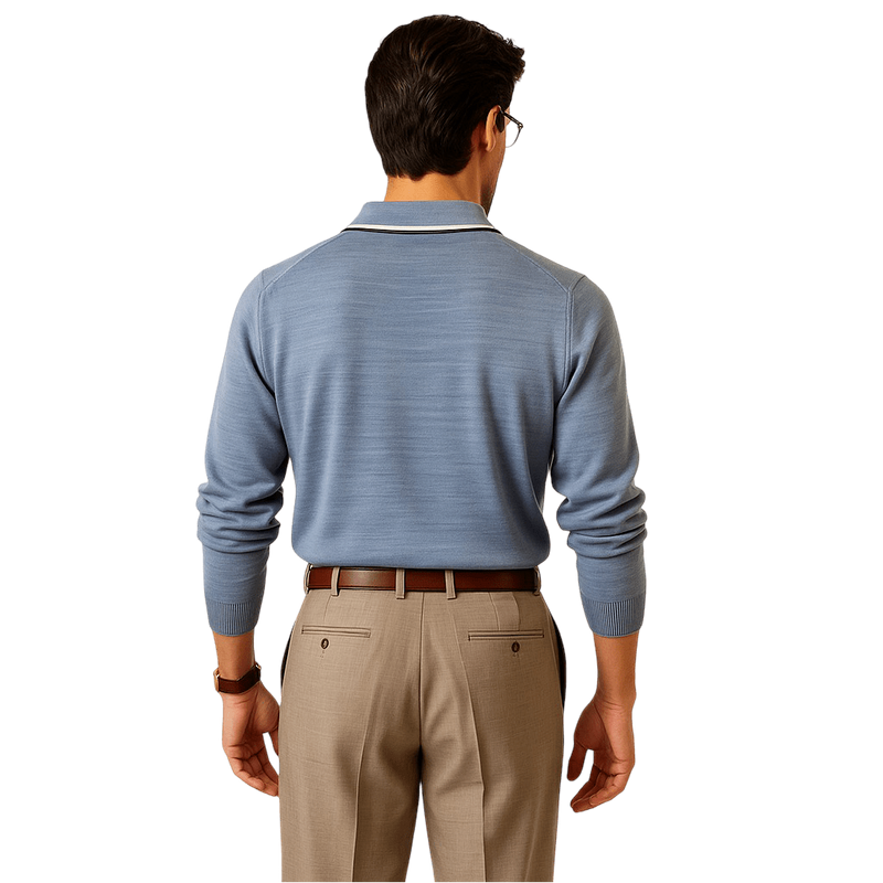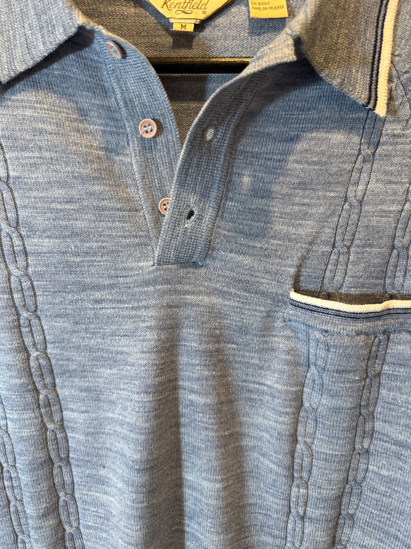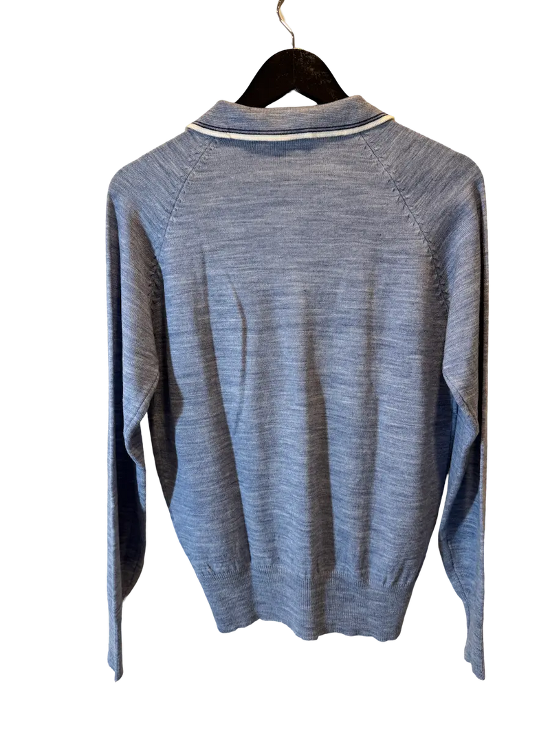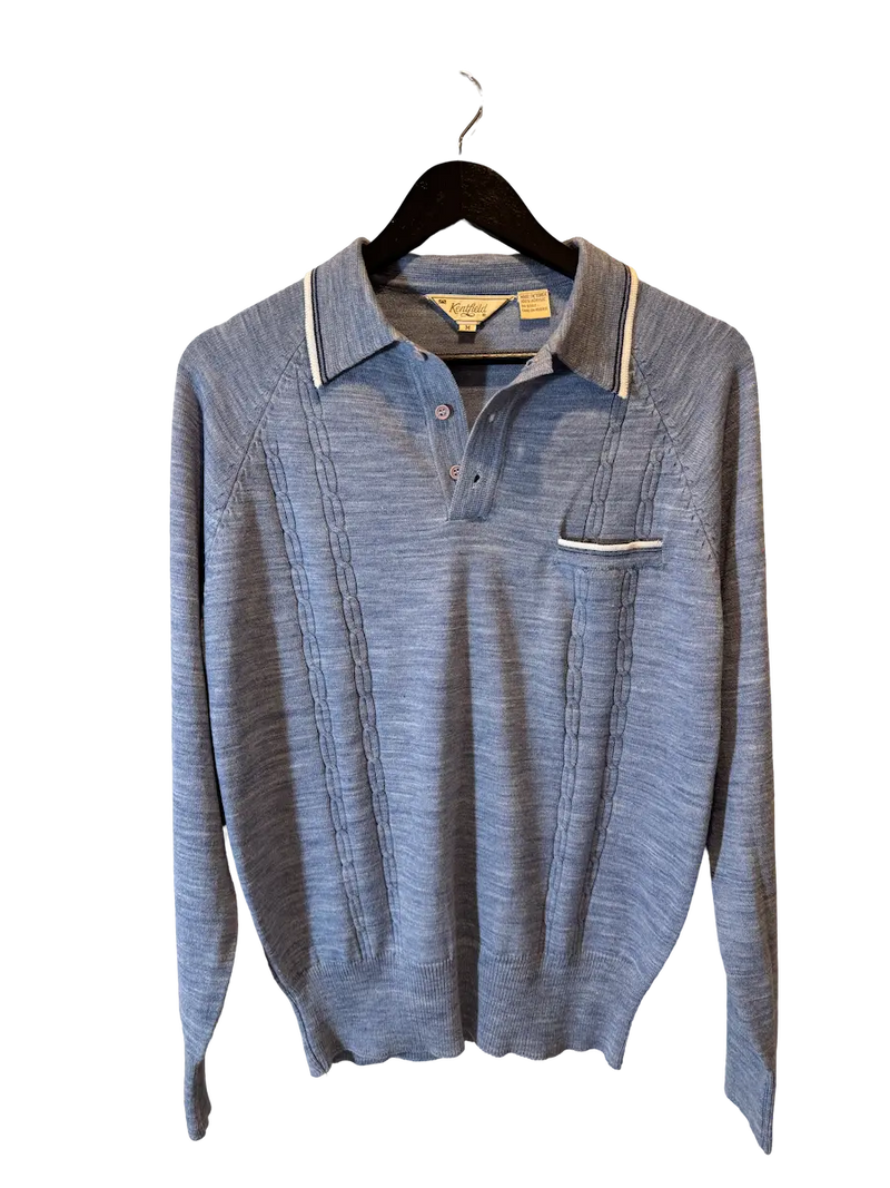 1960s Kentfield Polo Sweater – a refined knit with braided detailing and a tailored collar, reminiscent of leisurely matches at private clubs or post-game scotch in the sunroom.