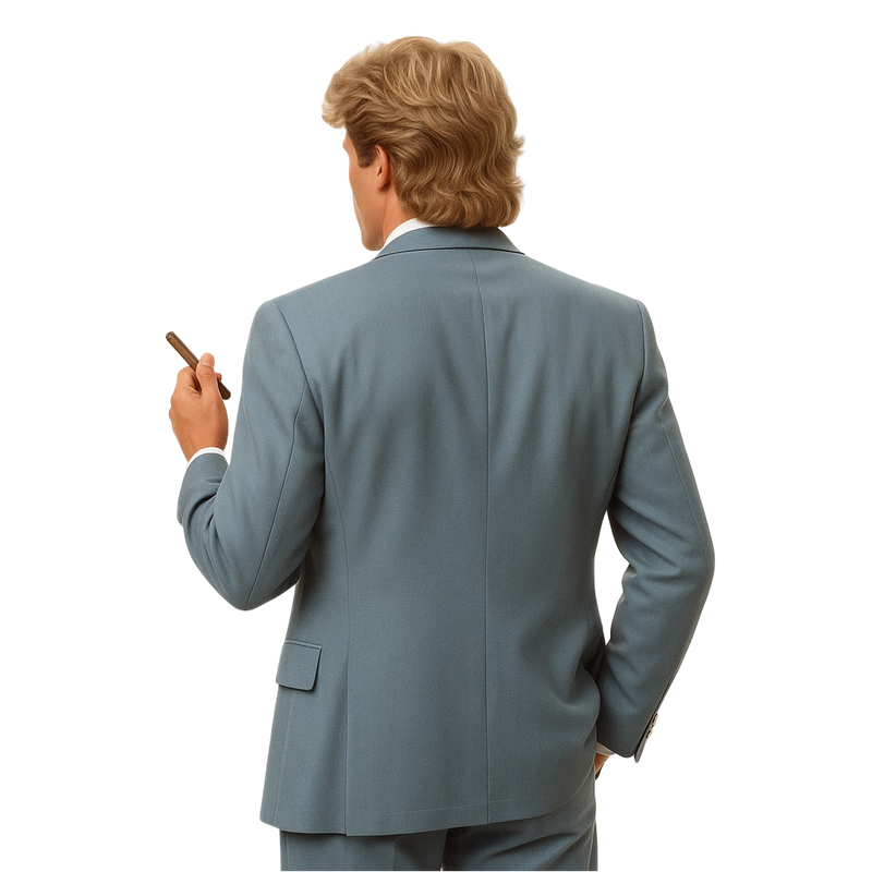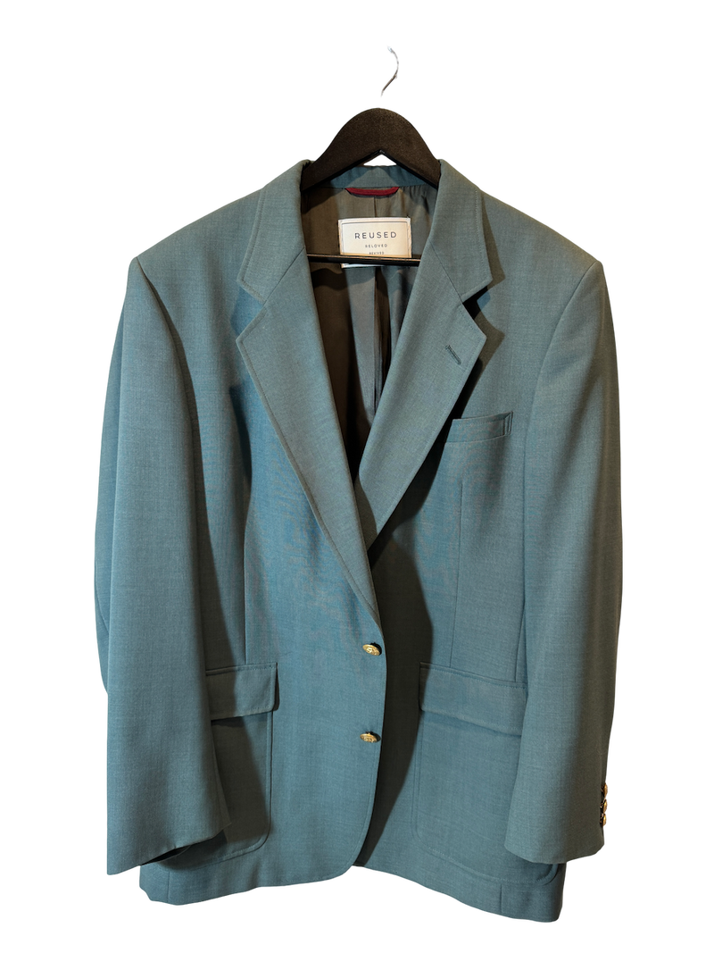 Porto Ercole Evening Blazer – a sea-glass blue two-button blazer with gold hardware and wide lapels, this jacket evokes al fresco film negotiations in Portofino’s twilight breeze.