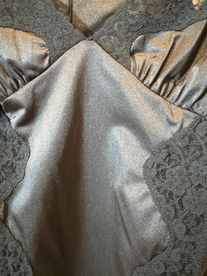 A noir satin and lace camisole, as if lifted from a hotel room drawer in Cannes after a long night of champagne, candlelight, and contract negotiations.