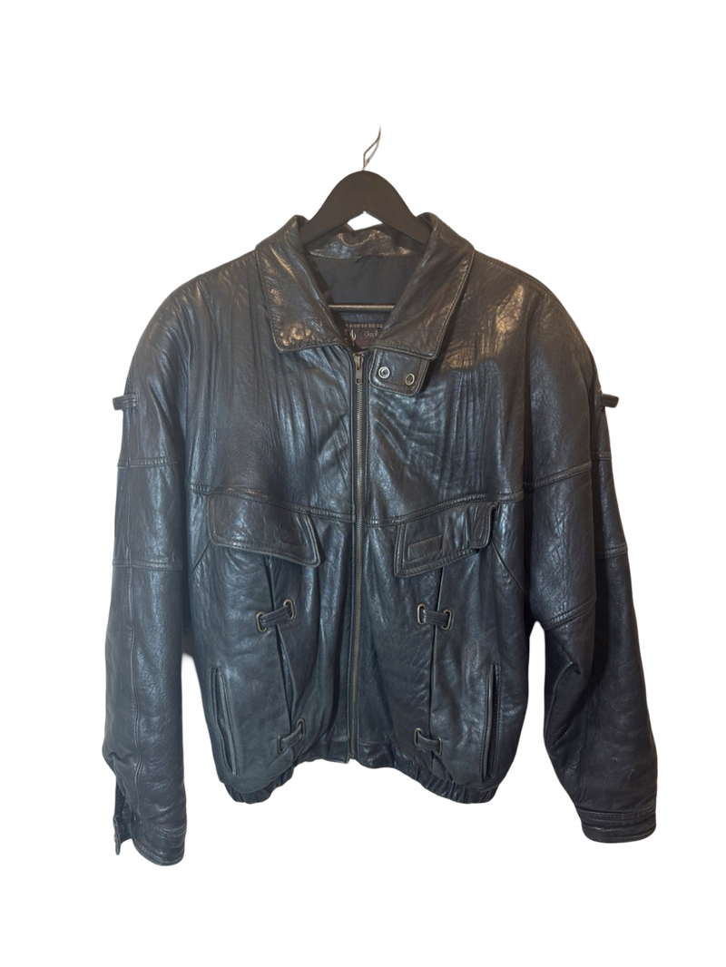 Road Warrior Jacket – this 1980s heavyweight leather bomber channels post-apocalyptic grit with Mad Max energy, built for chaos, speed, and underground defiance.