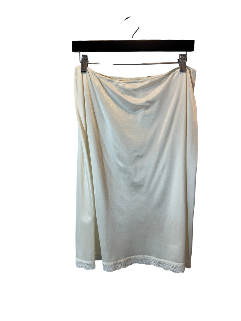 Americana Half Slip Skirt – this 1950s cream half slip is a minimalist foundation layer with soft lace trim, once standard in the wardrobes of tidy homemakers and suburban romantics alike.