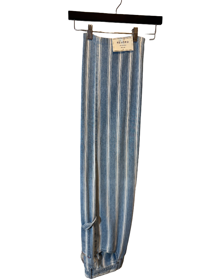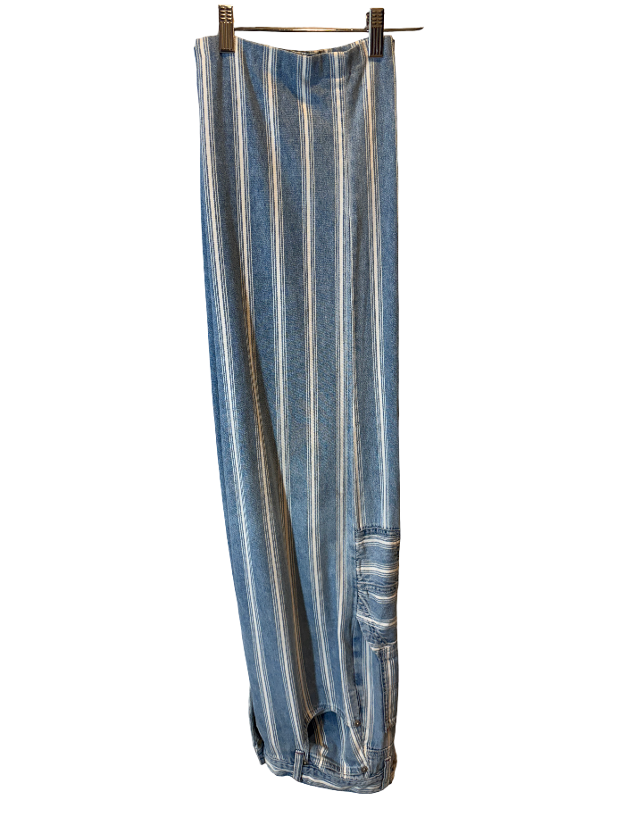 Railroad Muse Carpenter Jeans – a striped denim with side loops and deep pockets, built for sketching by the tracks, cloud-watching under sycamores, and reading manifestos from your back pocket.