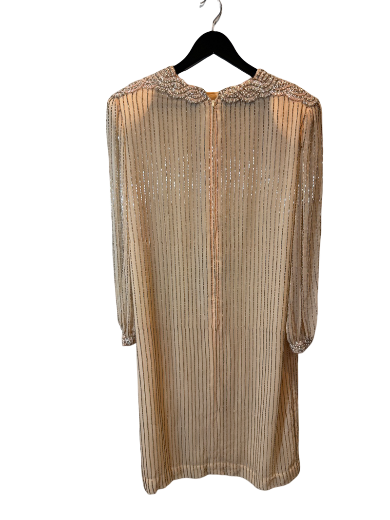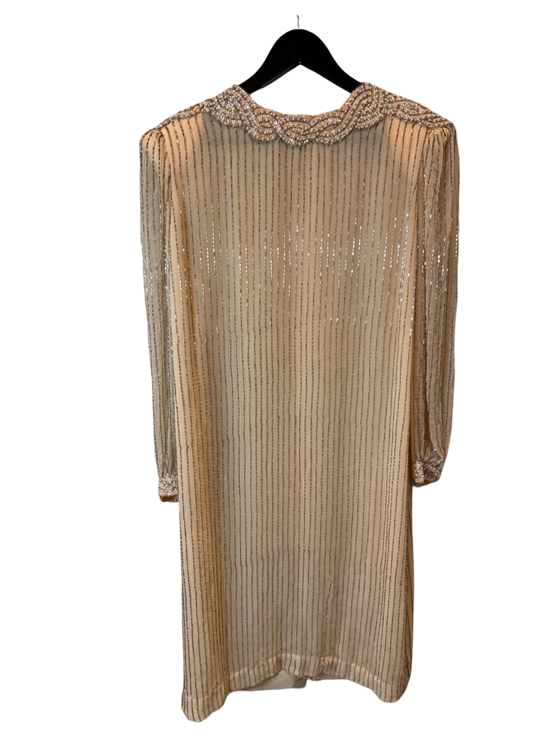1960s J azz Club Beaded Dress – A sleek, beaded dress designed for the dimly lit jazz clubs of the 1960s, exuding effortless sophistication and movement.