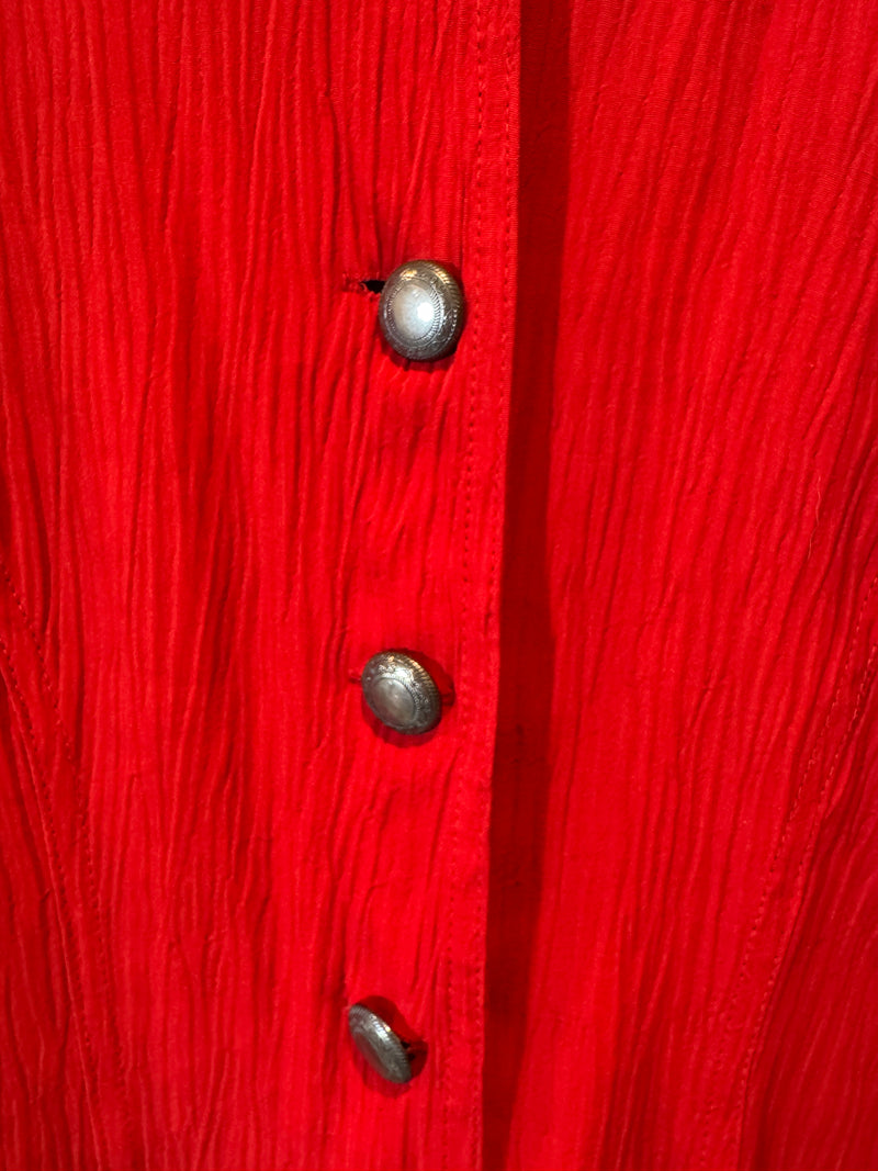 Rayon-blend crepe with light lining. Sourced and revived in the USA.