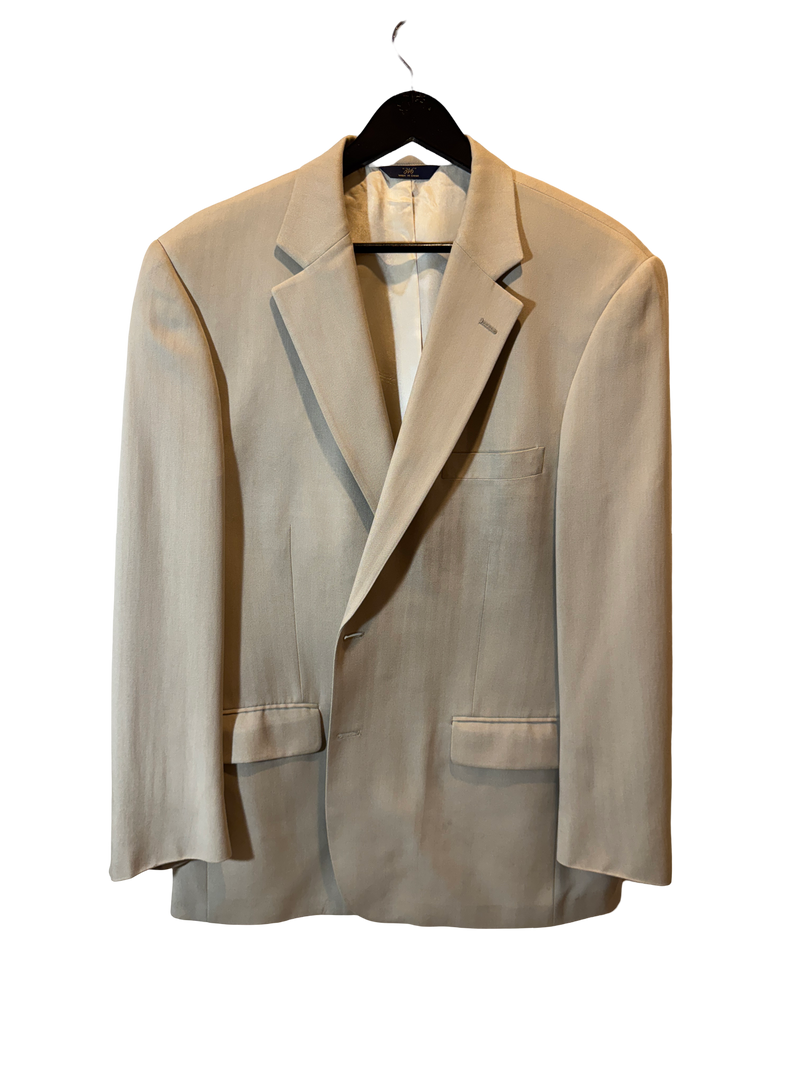 Riviera Parliament Blazer – this pale almond 1960s single-breasted blazer channels the breezy austerity of off-season Cannes, where power deals met poolside idling. Midweight and fully lined with sharp notch lapels and flap pockets.