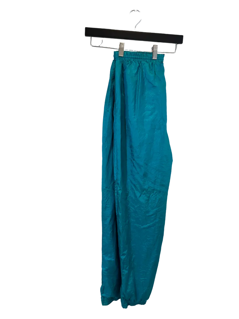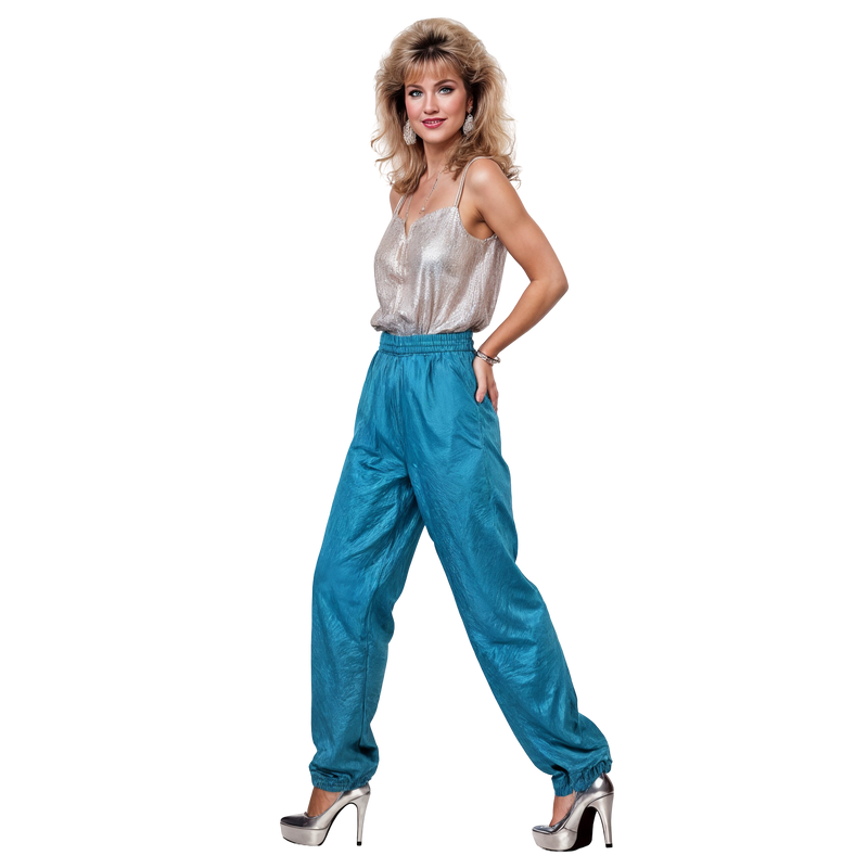 Electric Mirage Pants – these bright teal track pants feel like a heatwave hallucination from a summer night at the discotheque, cool to the touch and hot in energy.