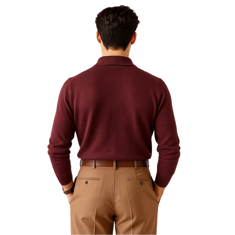 Rothschild Burgundy Polo – a rakish 1960s knit polo in a deep claret hue, exuding the composed, aristocratic flair of a trust fund heir breezing through a long weekend in Montauk.