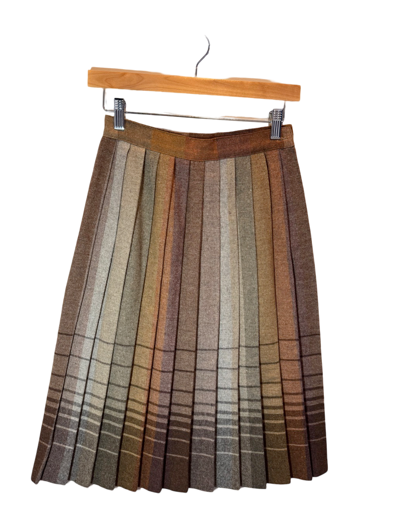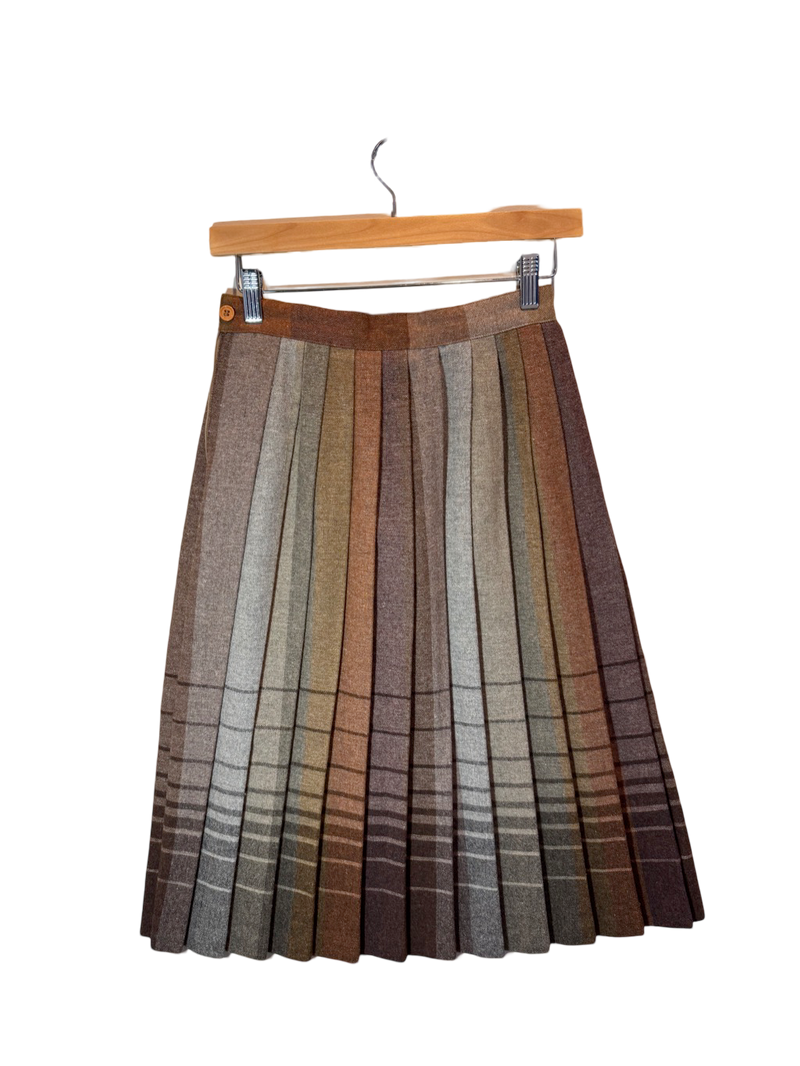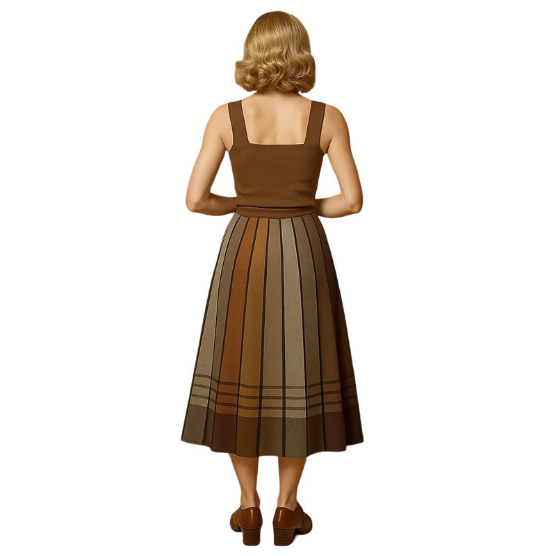 1960s Harvest Plaid Skirt – a warm-toned pleated skirt reflecting the earthy hues of 1960s autumn fashion, blending elegance with everyday comfort.