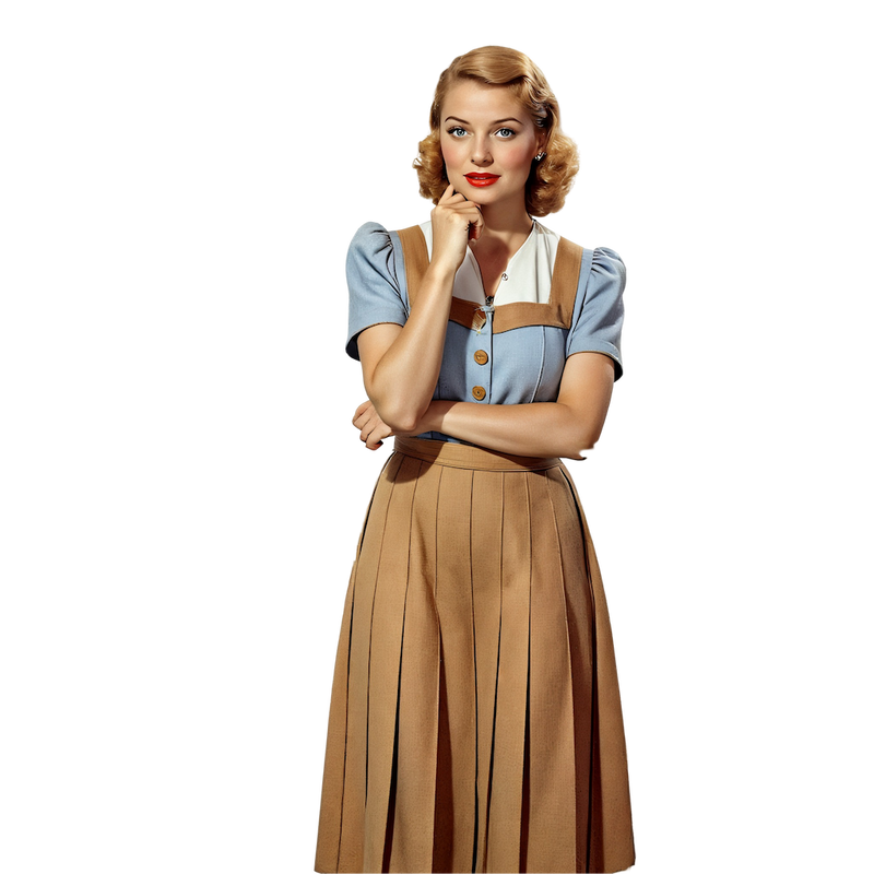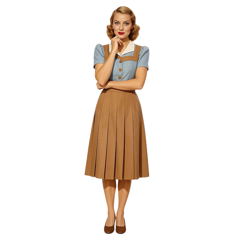 1960s Sunday Best Pleated Skirt – a structured, mid-length pleated skirt that embodies the refined simplicity of 1960s daytime elegance.